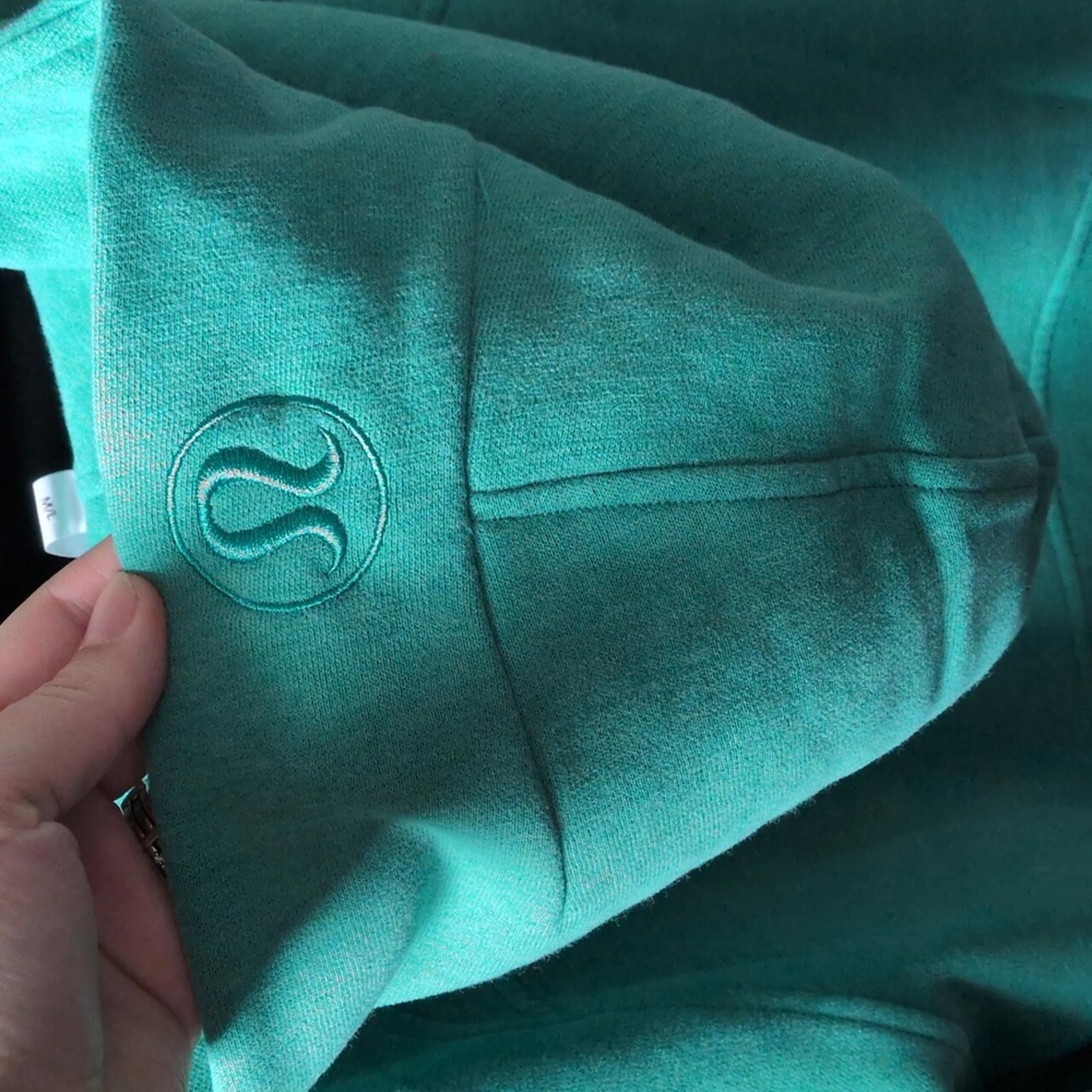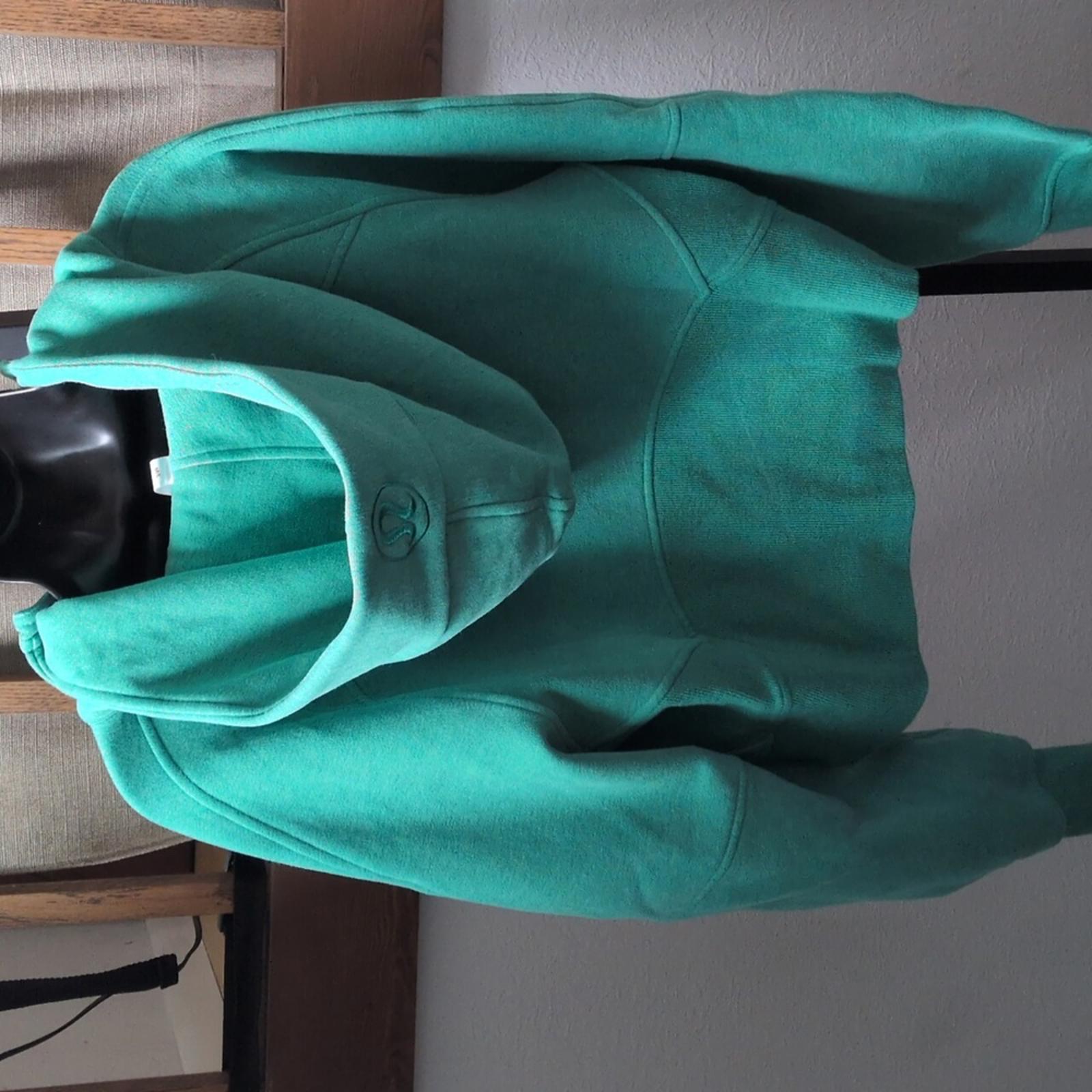 Lululemon Cropped Quarter Zip Scuba Hoodie Size M/L. excellent pre-owned condition. Kelly Green color. zippers up in the middle. kangaroo pocket.