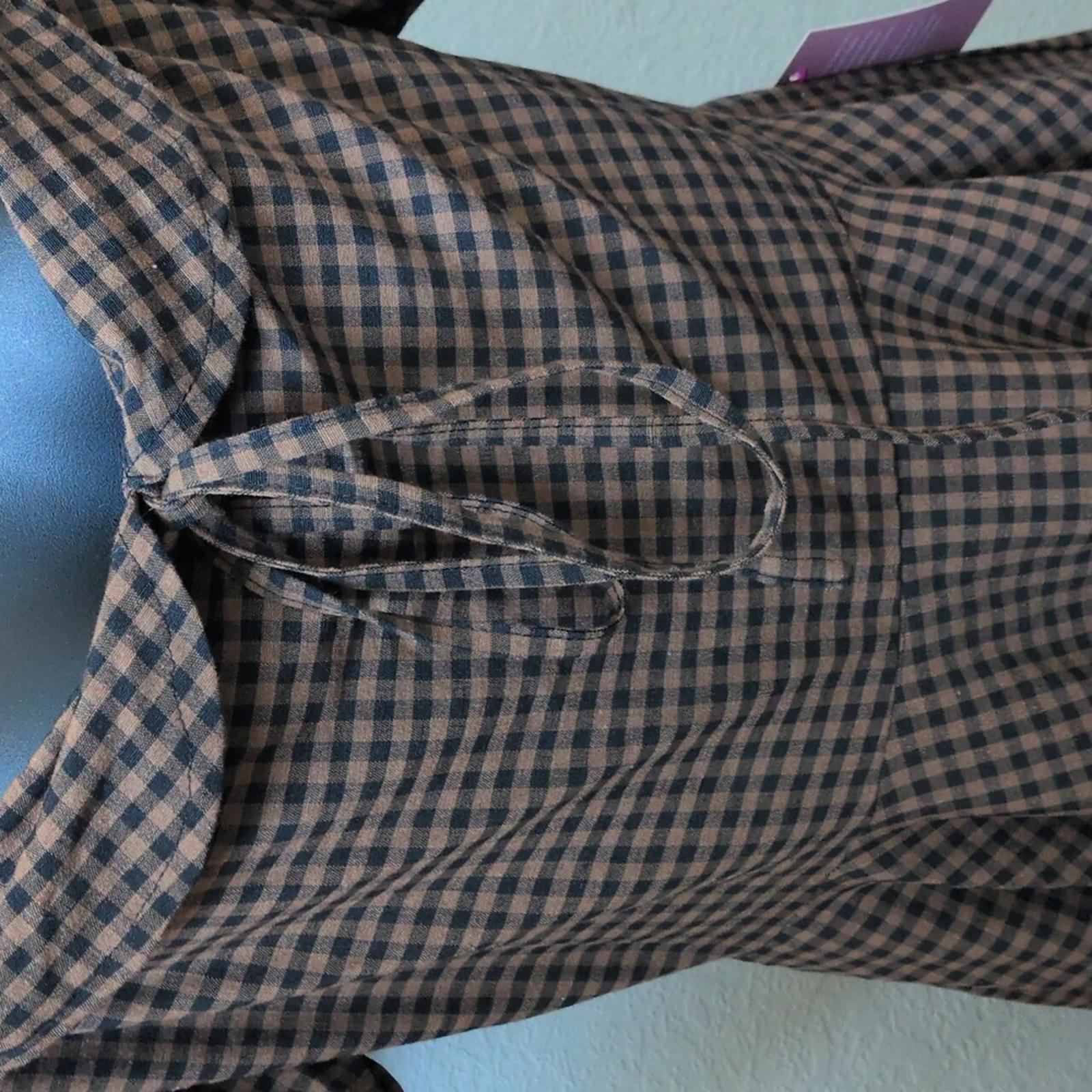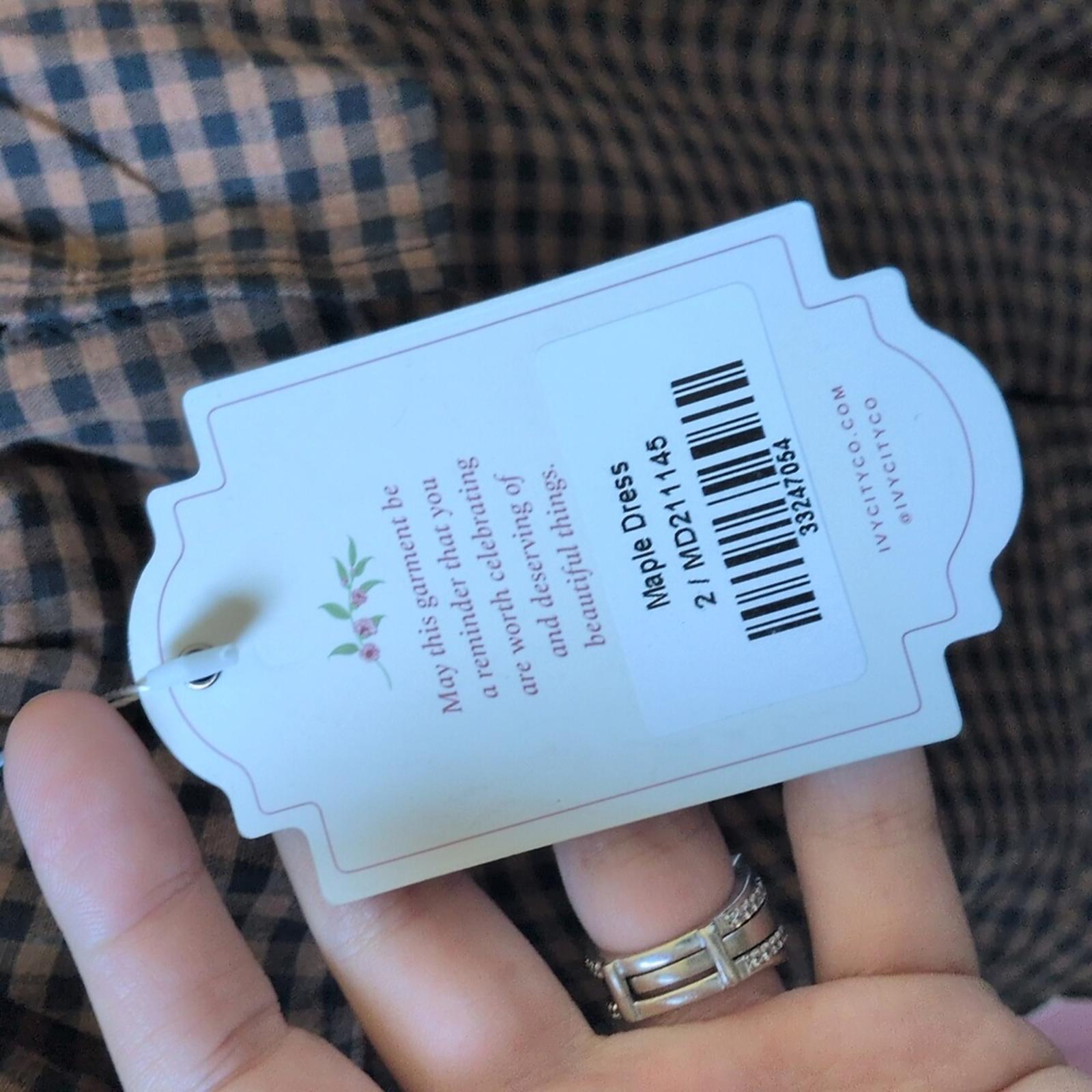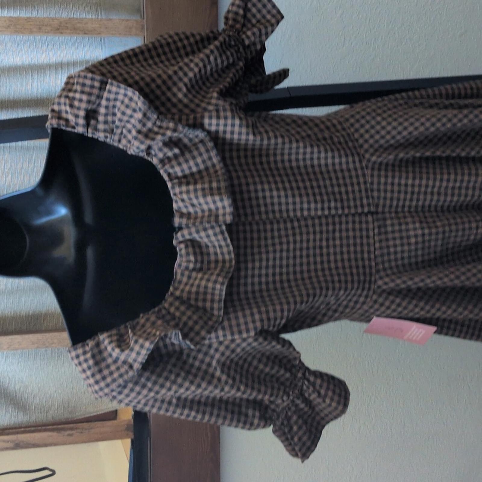 New with tags Ivy City Co Maple Plaid Dress Size 2. beautiful stunning black and brown checked plaid. ties at the top. has elastic puff sleeves.