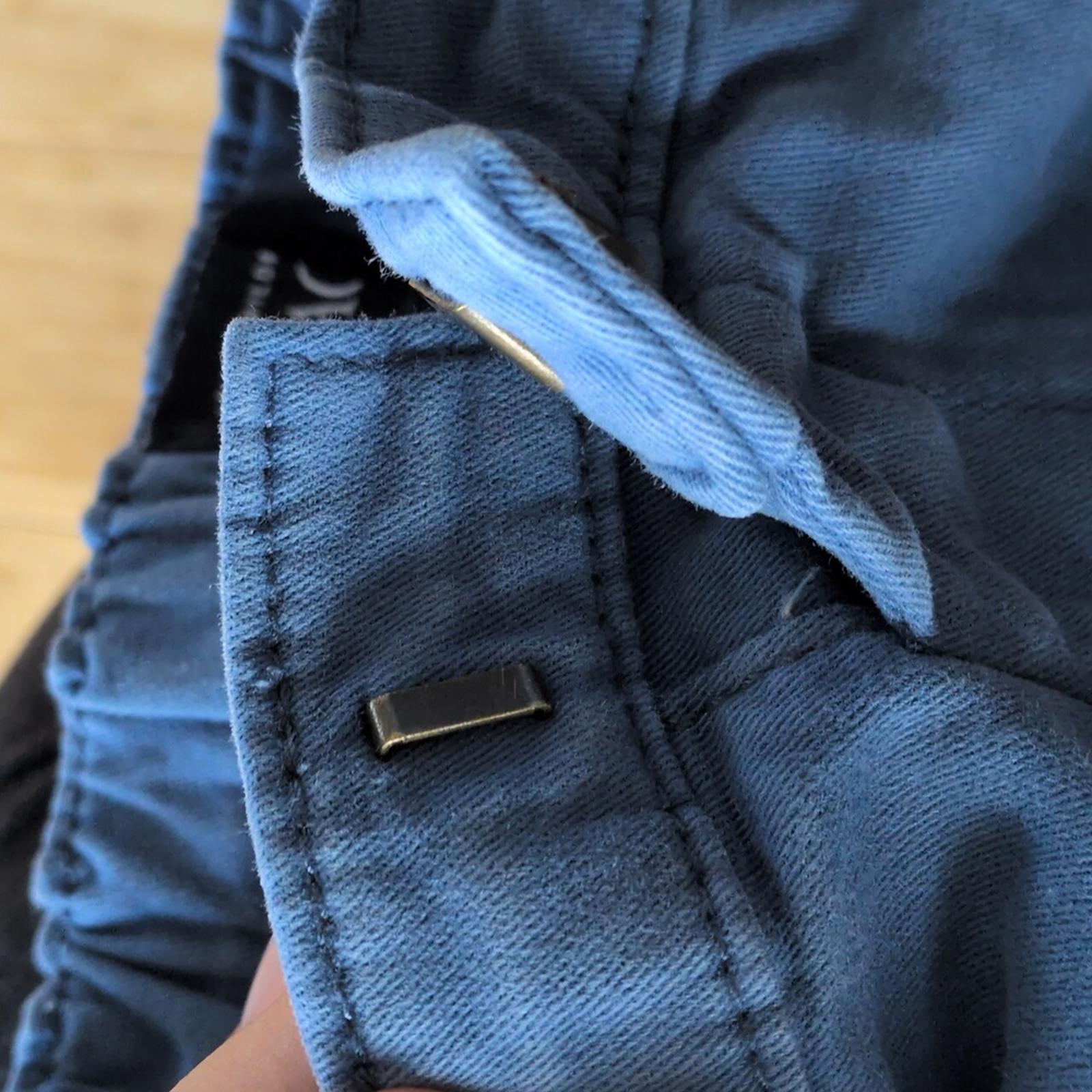 faux button top with easy slider. elastic waistband. pockets on the sides. very good pre-owned condition