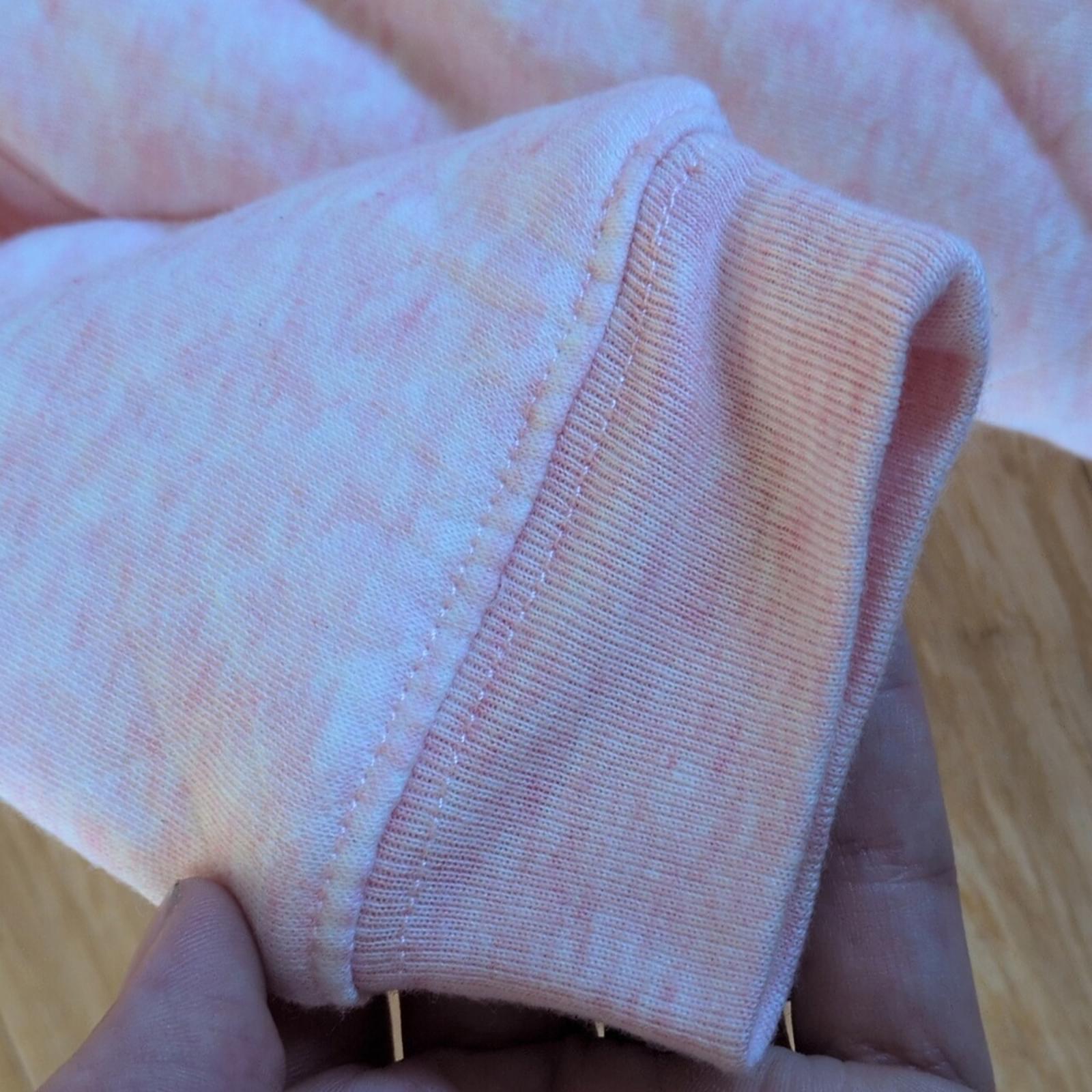 polyester and cotton and blend. zippers up in the front. sharper lining. cute, adorable little ears on the top of the hoodie