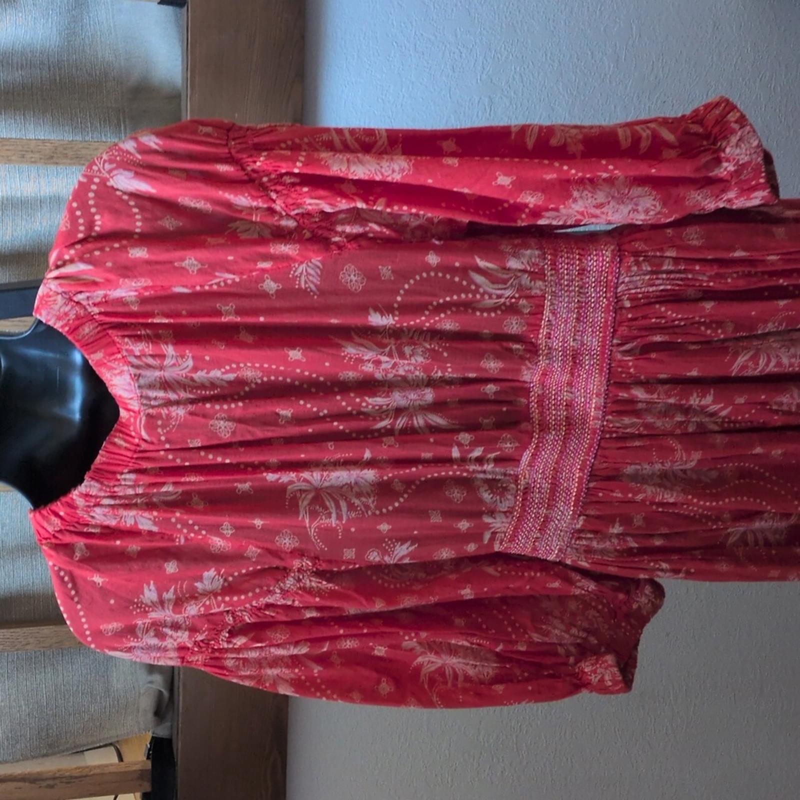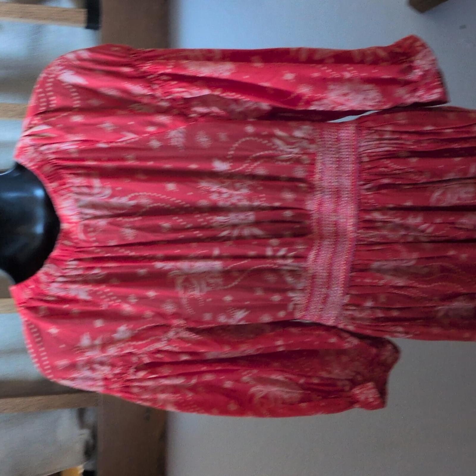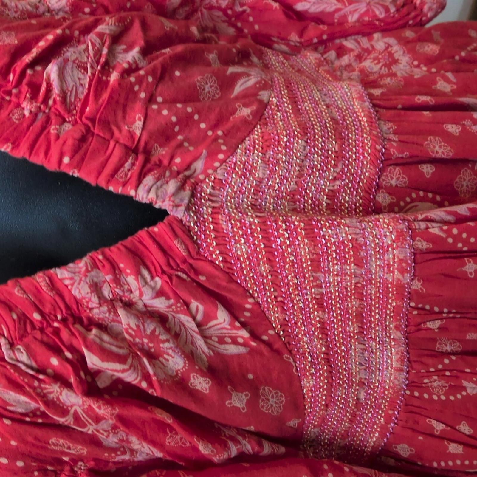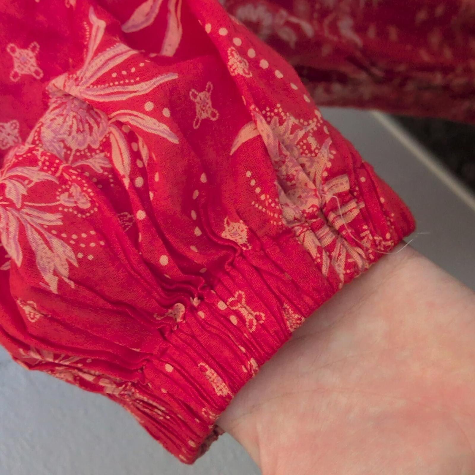 Golden Hour Maxi Dress In Cayenne And Pink Size S. fits true to size. v-neck. elastic waist. elastic at the ends of the sleeves. has pockets on the sides.