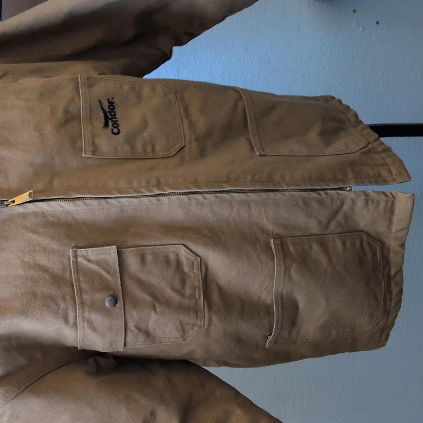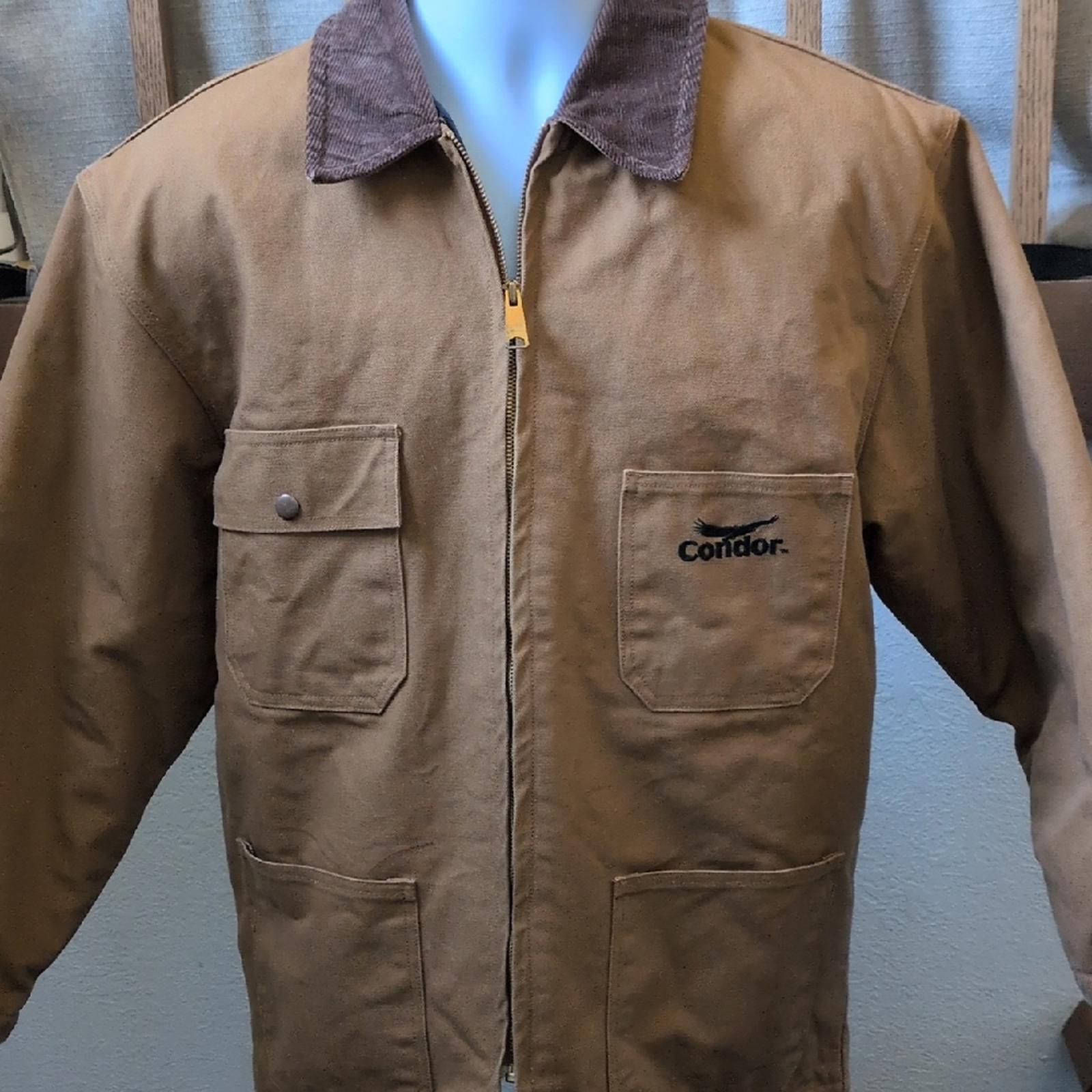 CONDOR Chore Coat Quilt Lined Cotton Duck Desert Sand Brown Men’s Size medium. zipper front with nice big pockets. Condor logo on the one front pocket. corduroy collar.