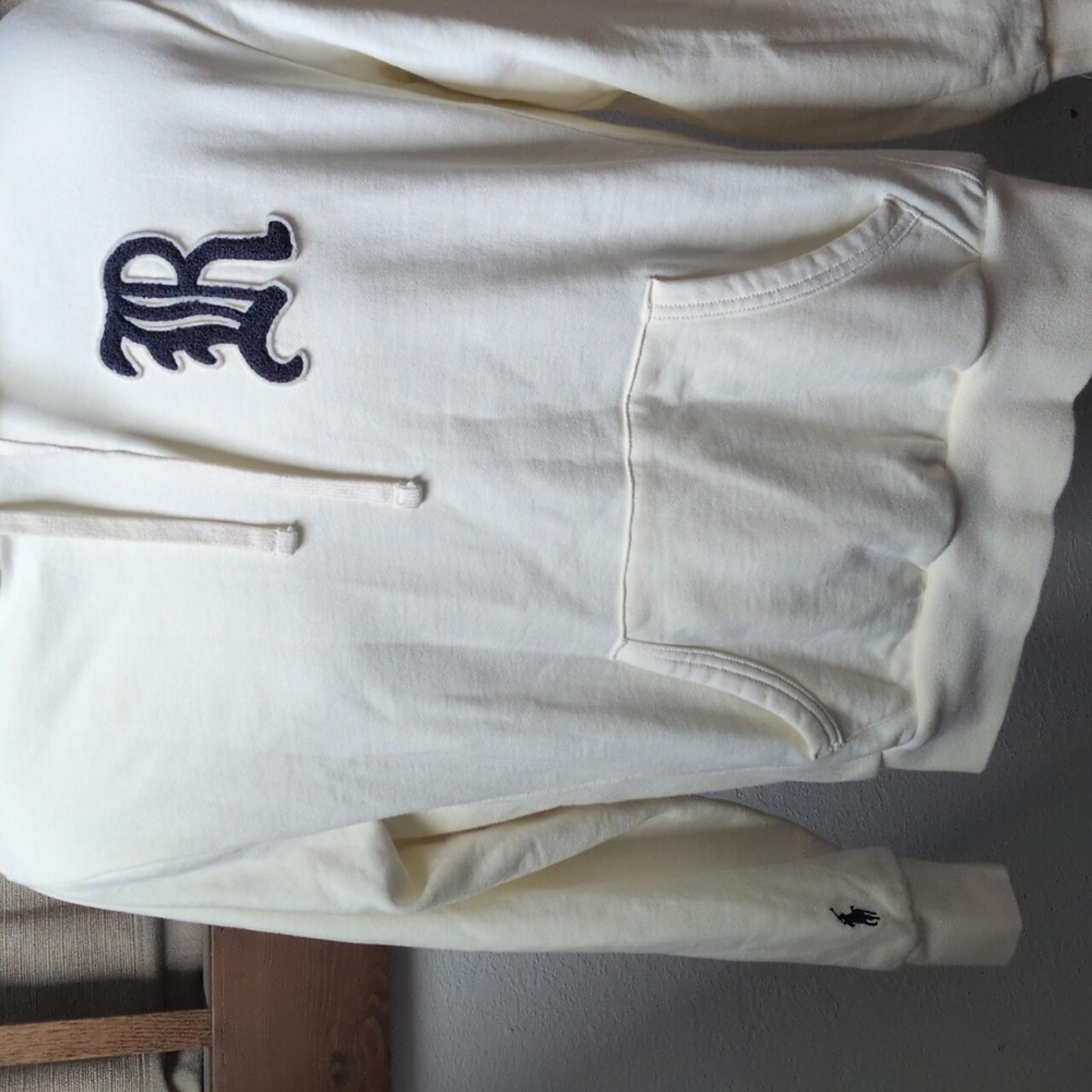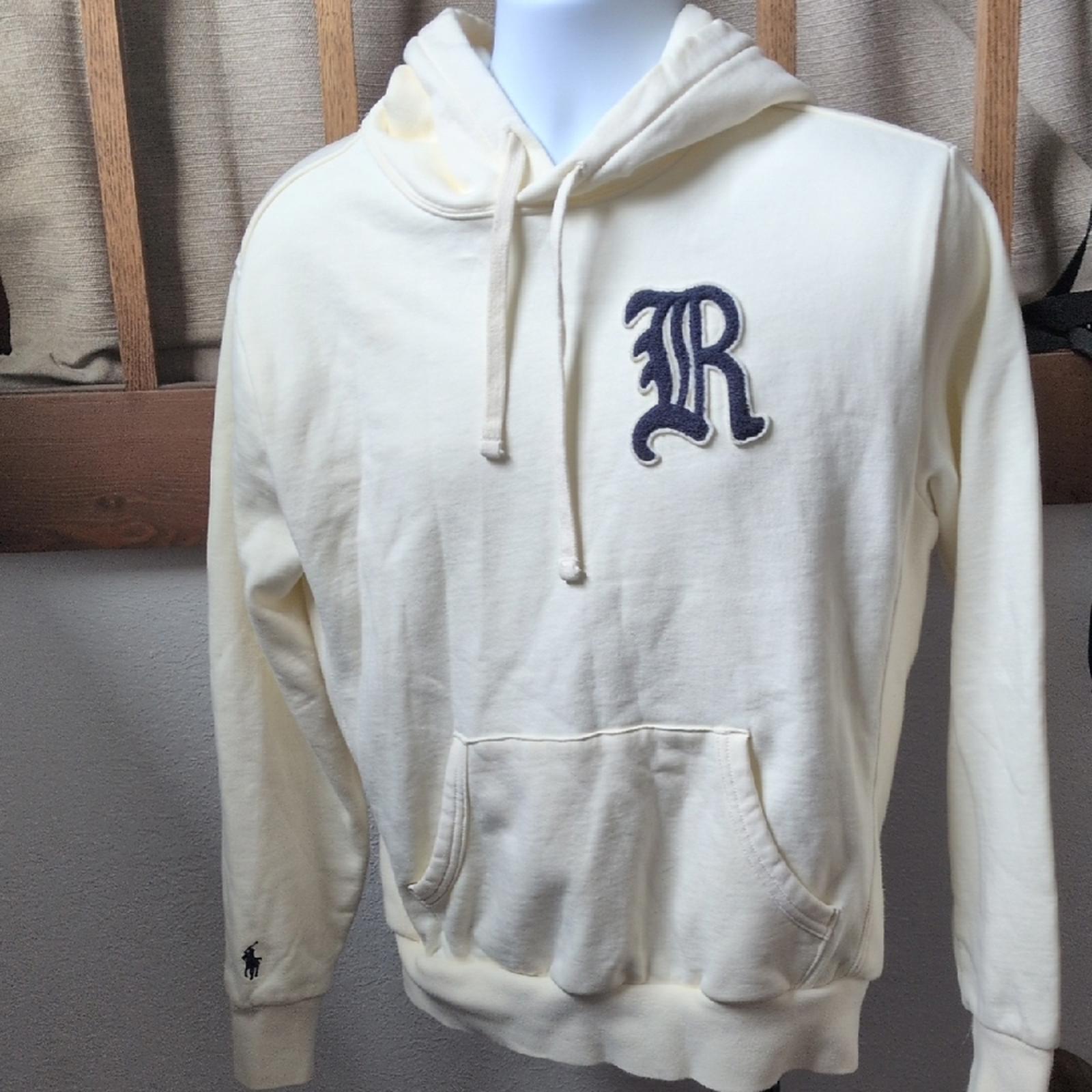 deadstock sweater. features a large varsity style r on the front. signature Polo pony logo on the sleeve. Nice kangaroo pocket.