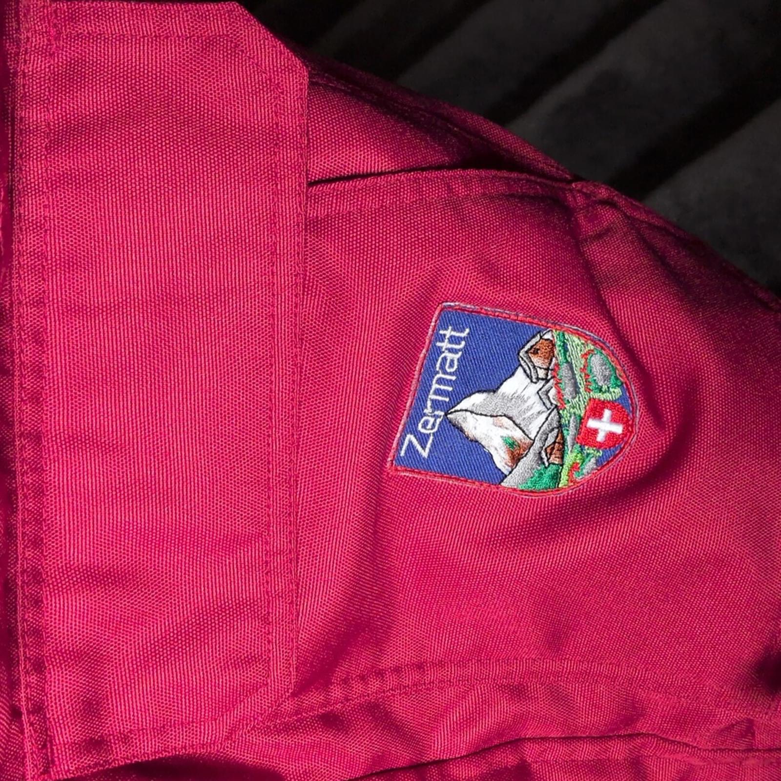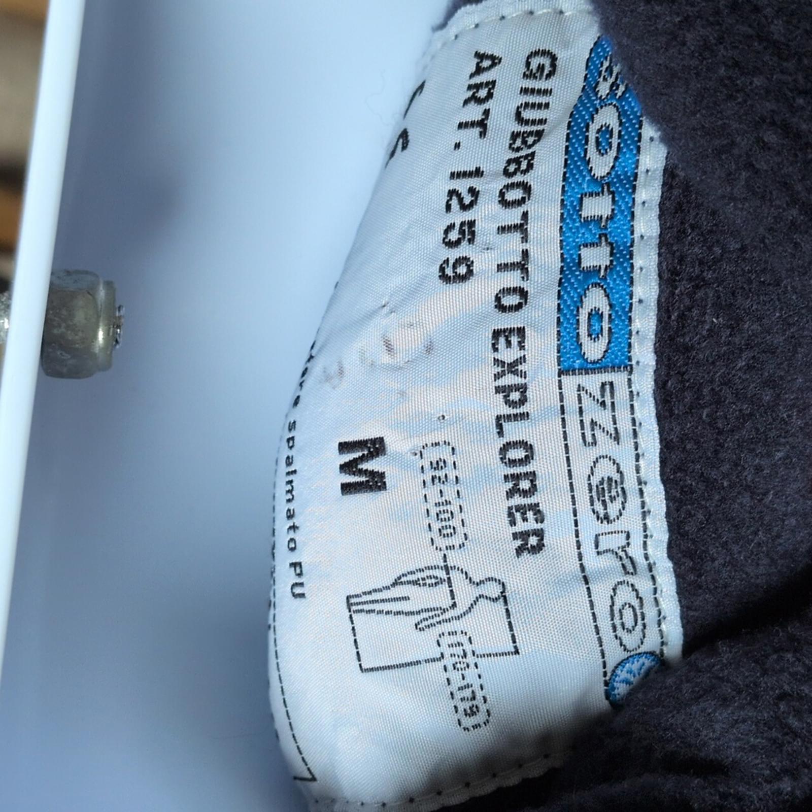 has all kinds of patches all over it. extremely warm and heavyweight.