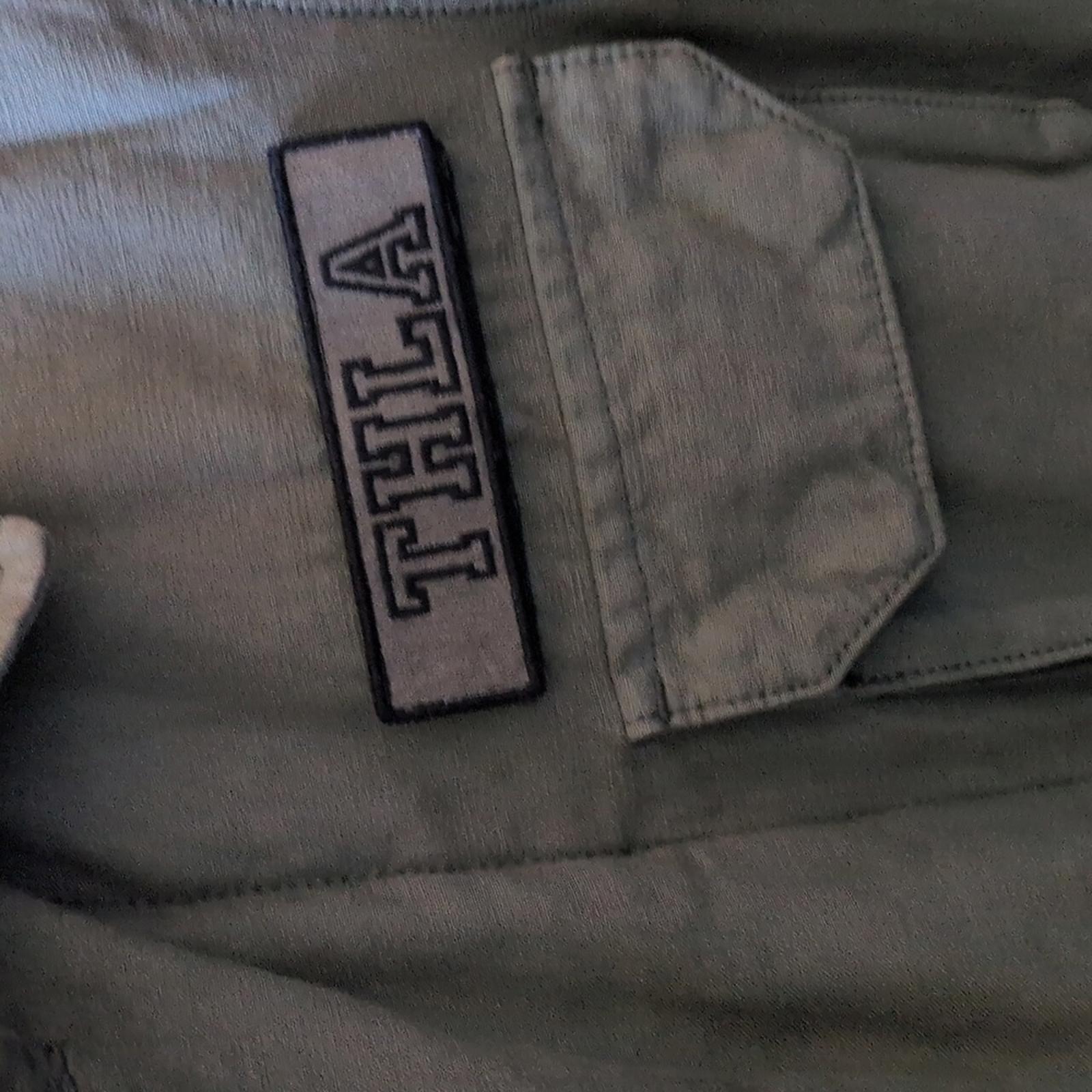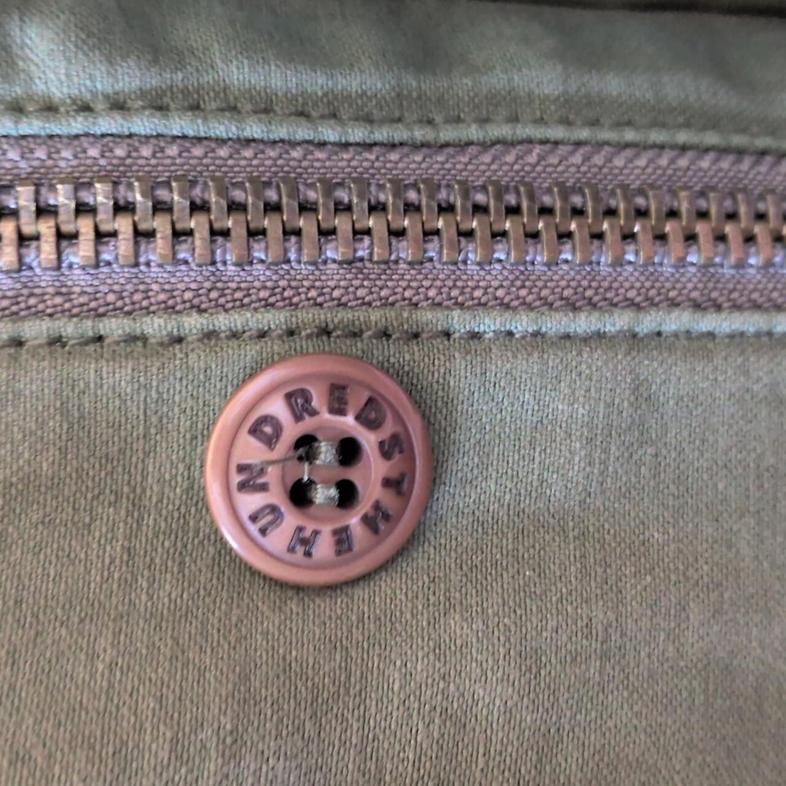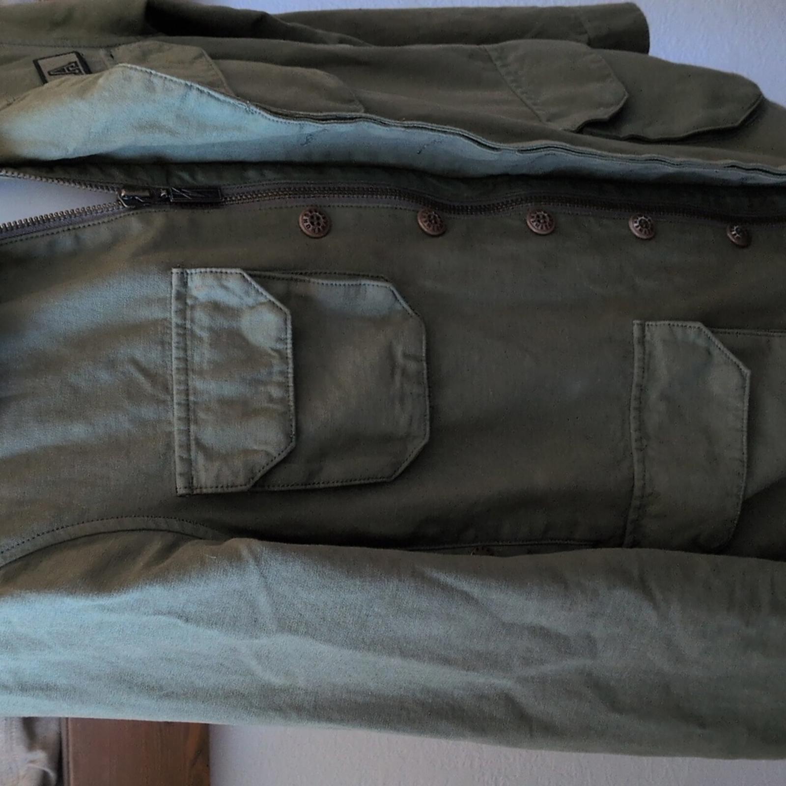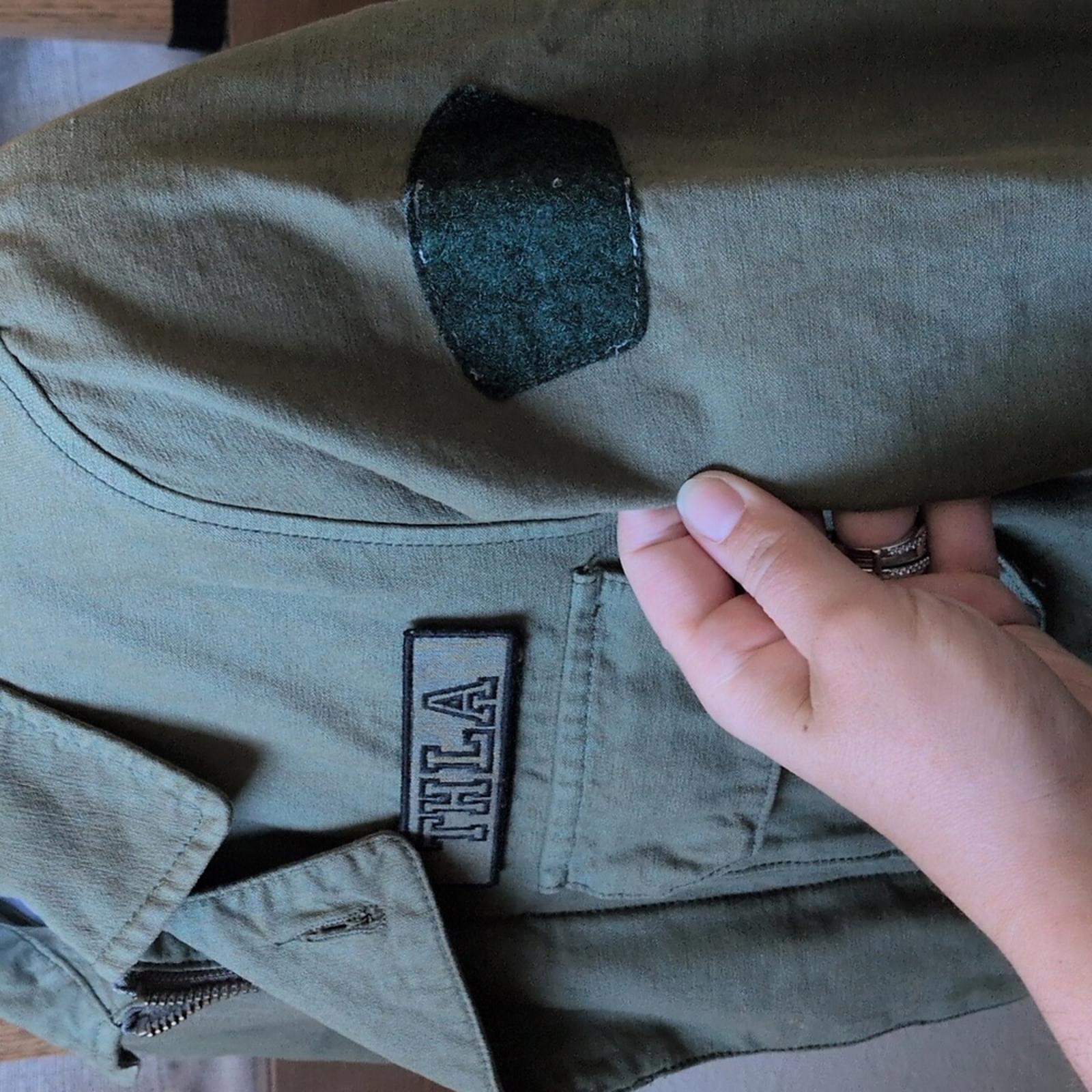 the Hundreds LA Vietnam Style Military Jacket Size Small . has a removable patch on the right hand side. and a area for a patch on the right shoulder.