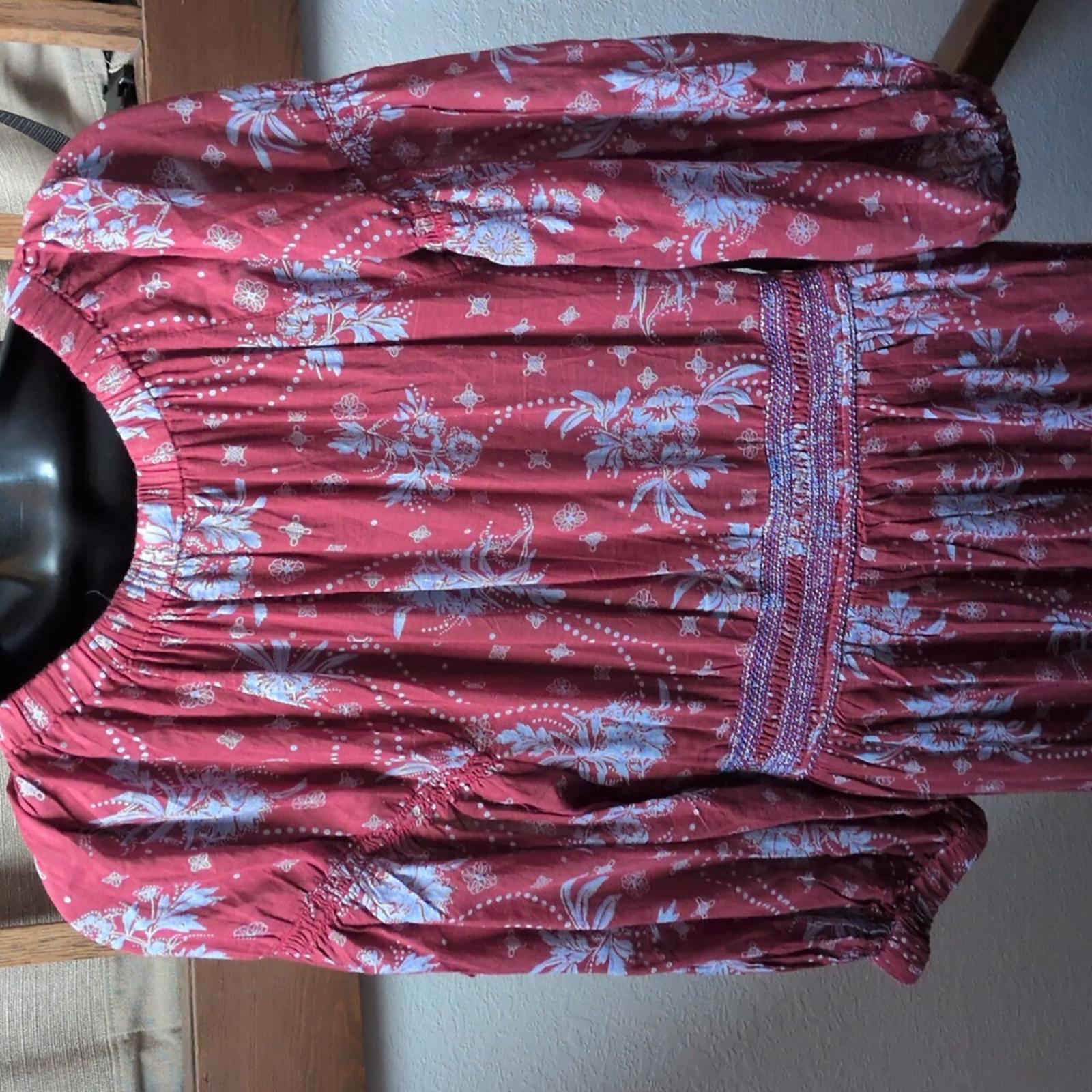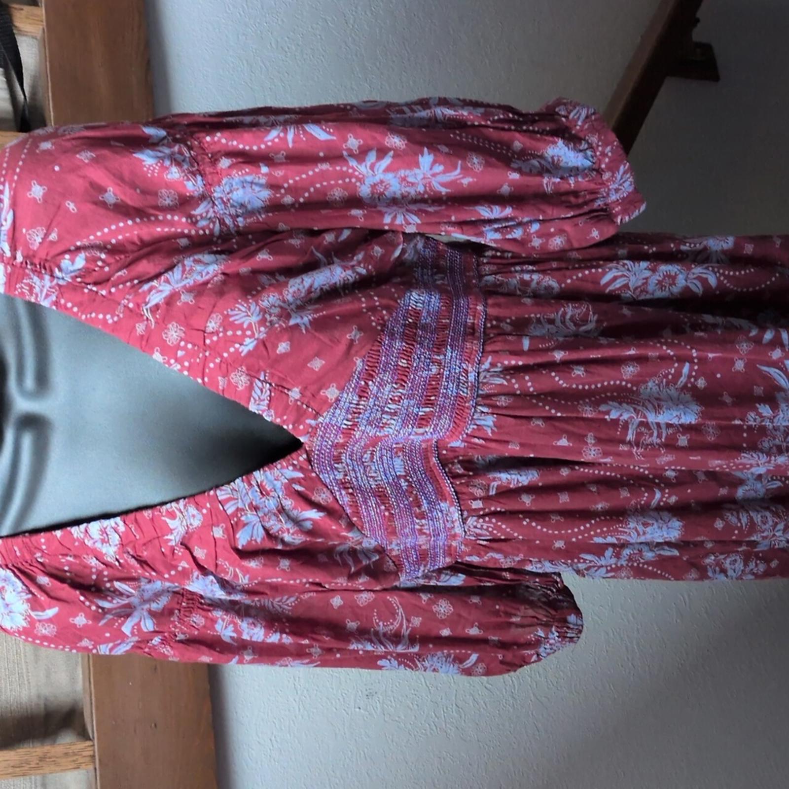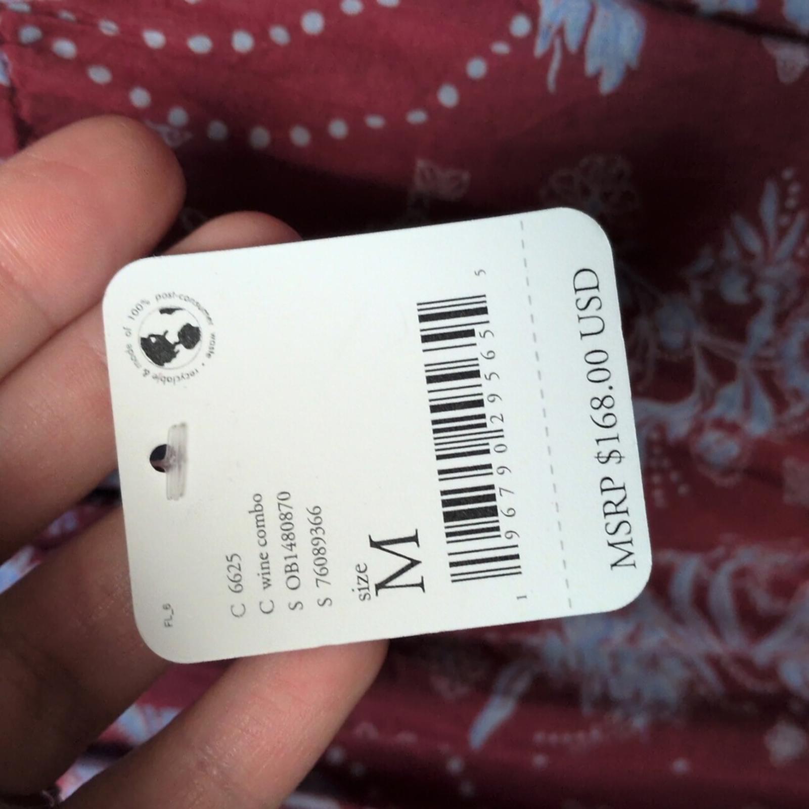 New with tags Free People Golden Hour Wine Combo Maxi Dress Size M. gorgeous burgundy color with light blue detailing. v-neck front. pockets on sides. elastic at waist.