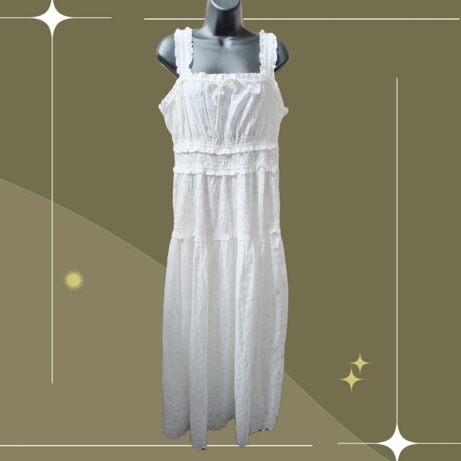 NWT Gap X Doen White Eyelet Tiered Dress Size Large.
