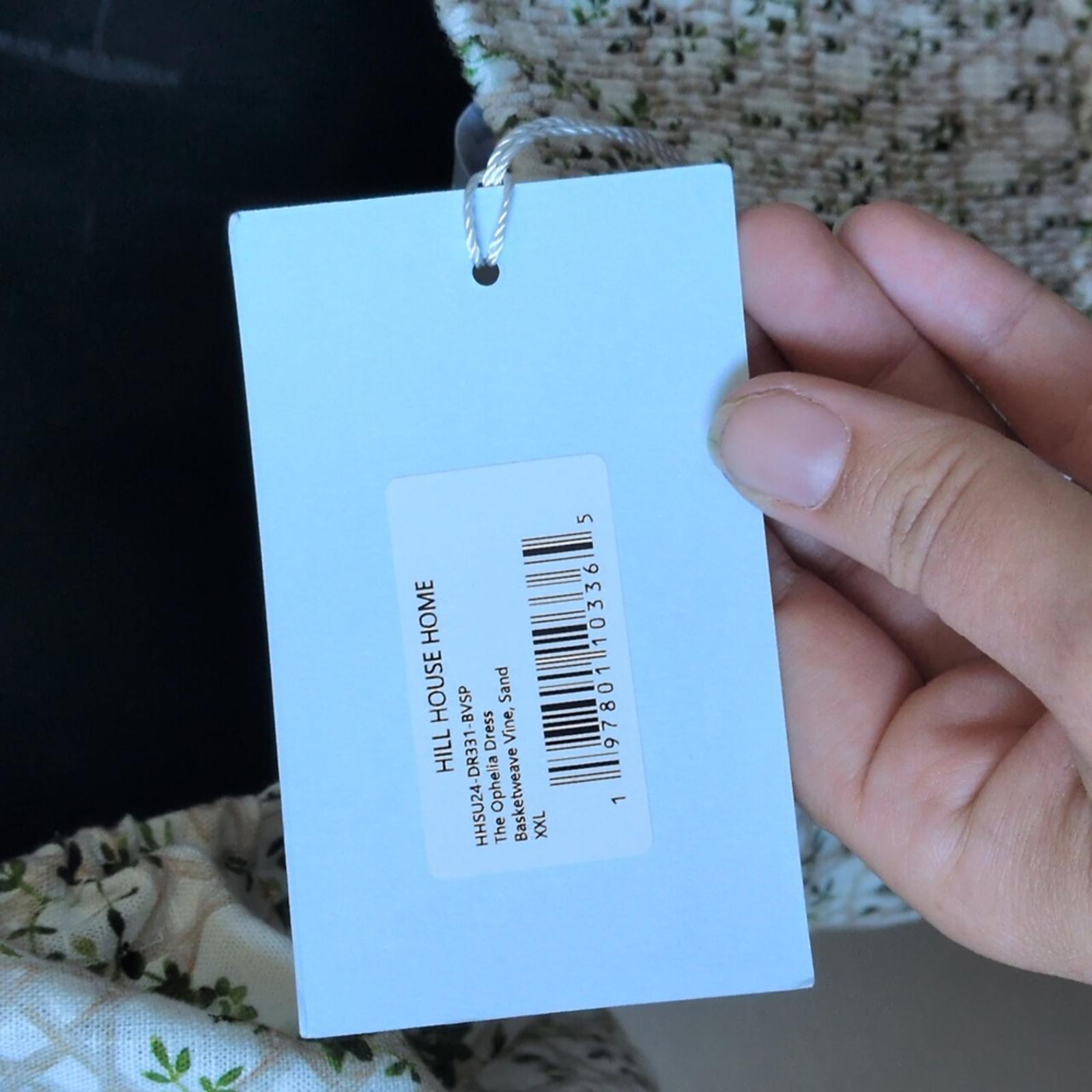New with tags Hill House Home Ophelia Basketweave Vine midi Dress In XXL . tan cream and green colors. ties at the front. Puff sleeves with elastic at the ends.