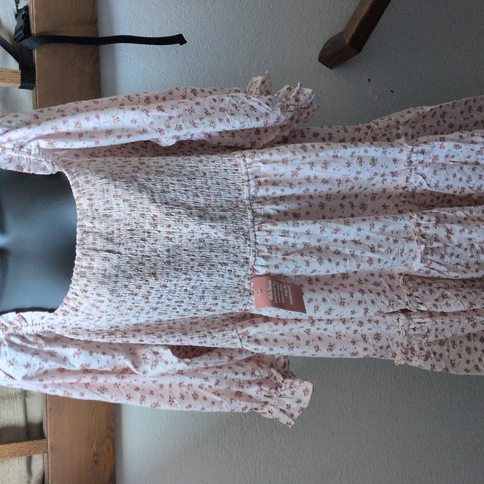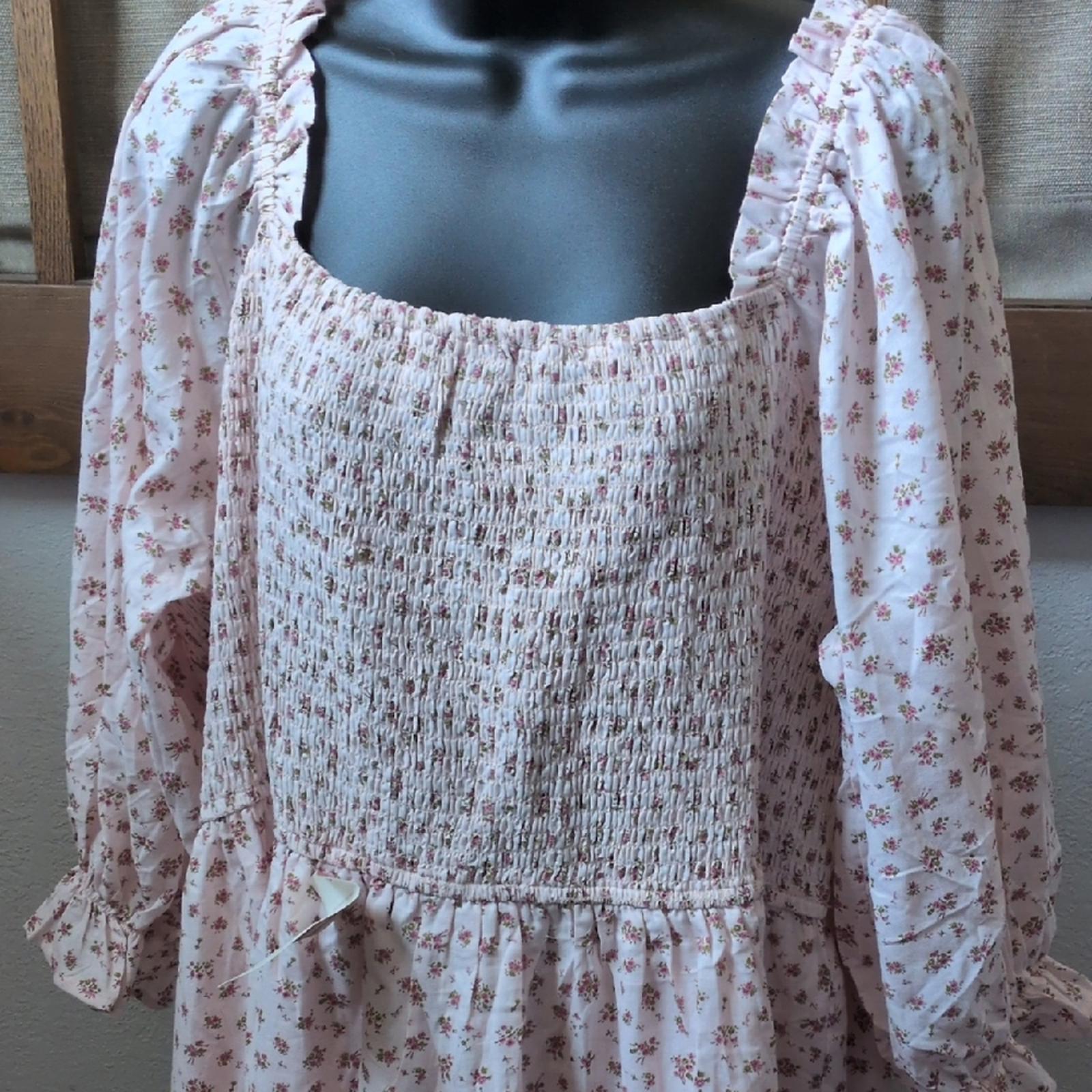New With Tags Ivy City Co Short Madelyn Dress In Pink floral Size 4X. elastic bodice with long sleeves.