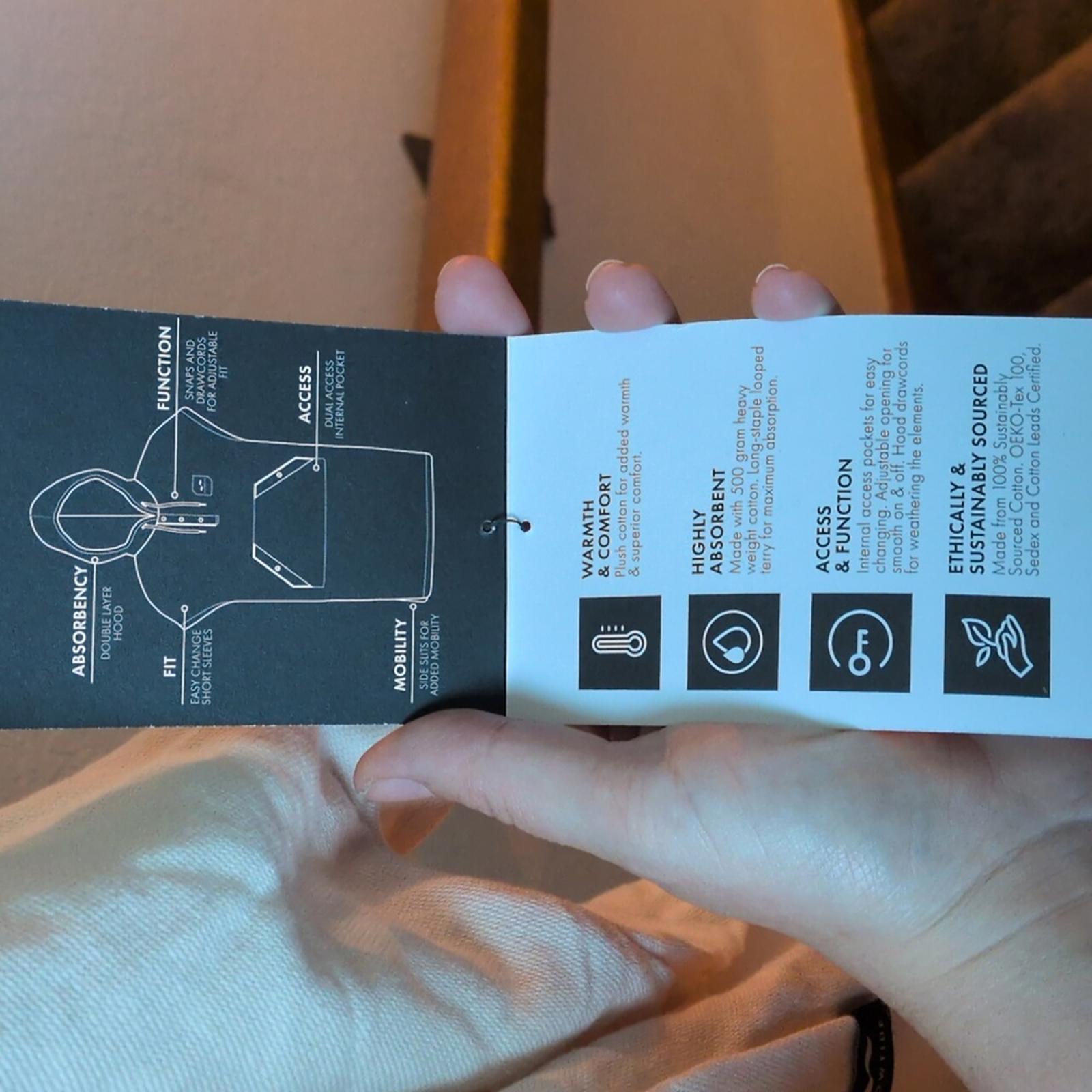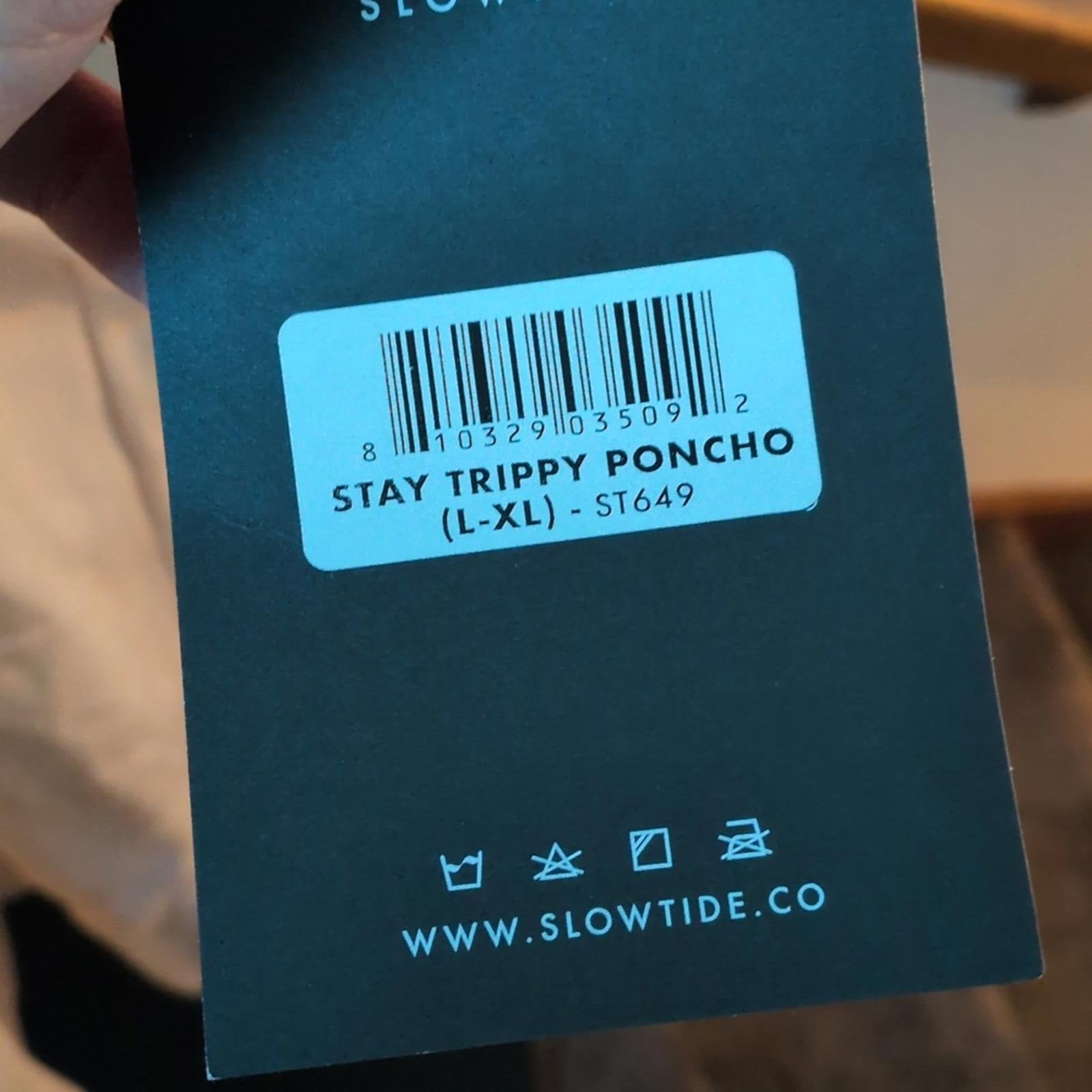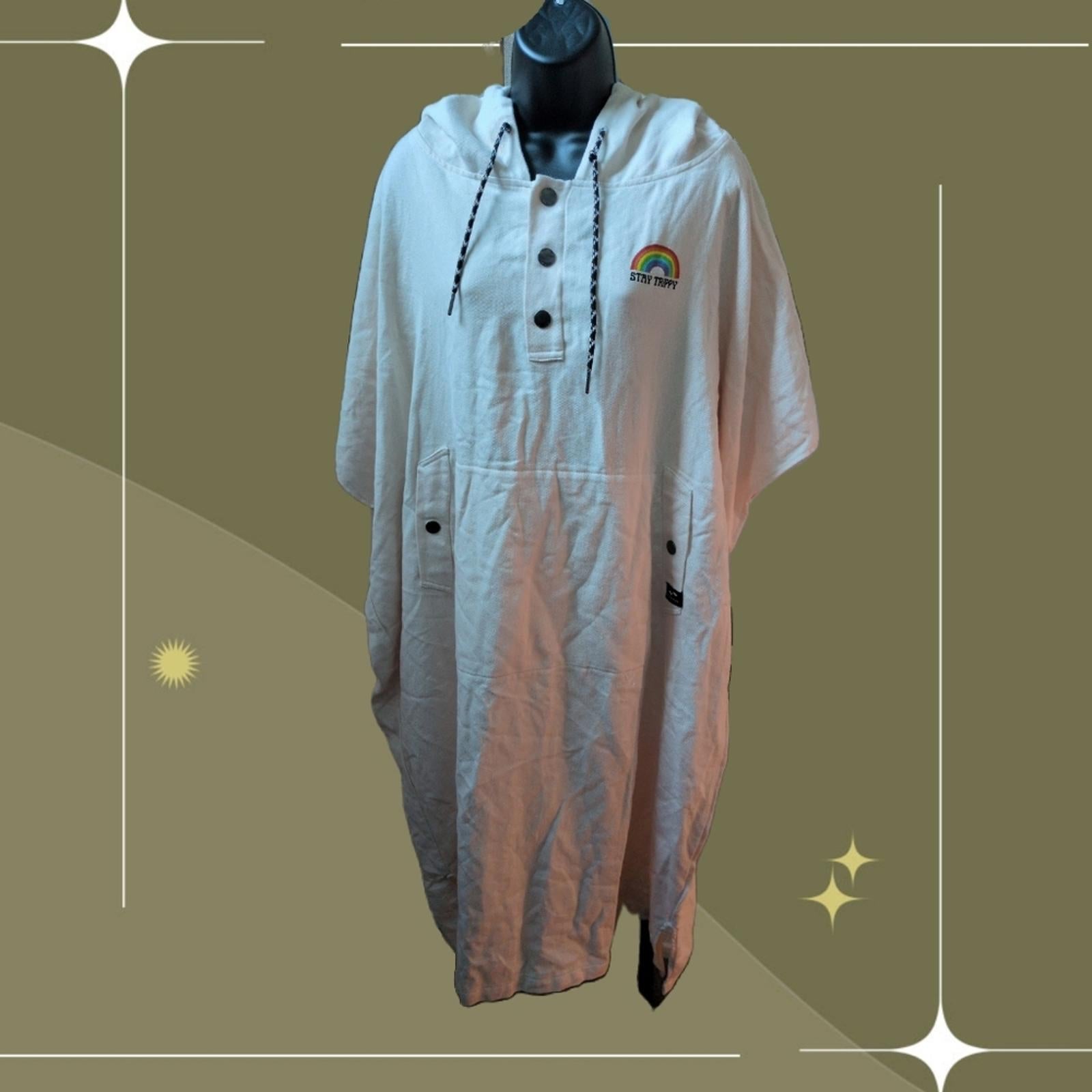 Nwt Slowtide Stay Trippy Changing Poncho In L/XL .has tags attached. snap pockets on the sides. snaps at the top. Nice drawstring Hood. soft cotton material. easy to change in and out of swimsuits or wet suits, or just wear as a cute cover-up going literally anywhere.