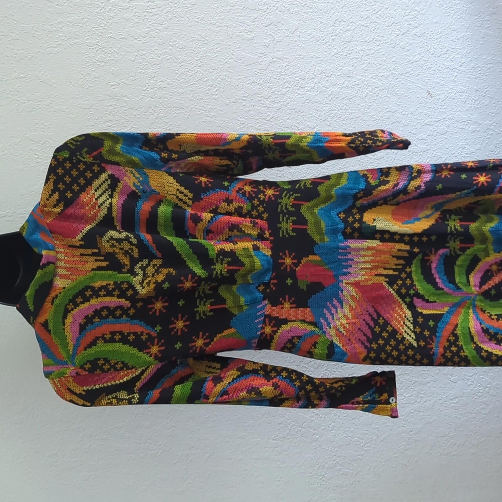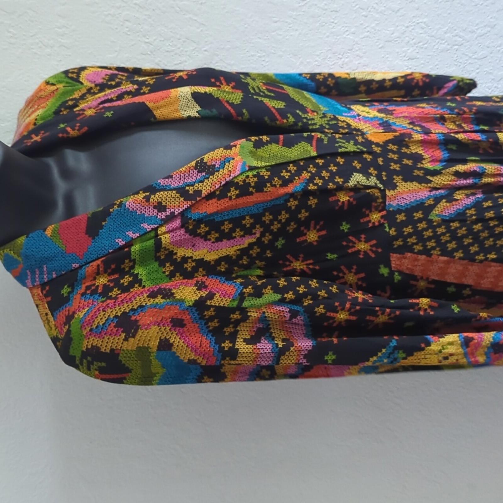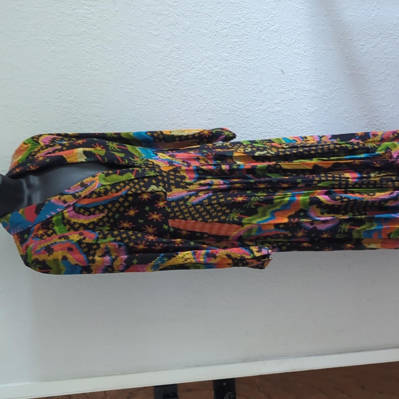 New with tags. Farm Rio midaxi dress. size xs. buttons on sleeves. clasp front. sold out. black macaw print