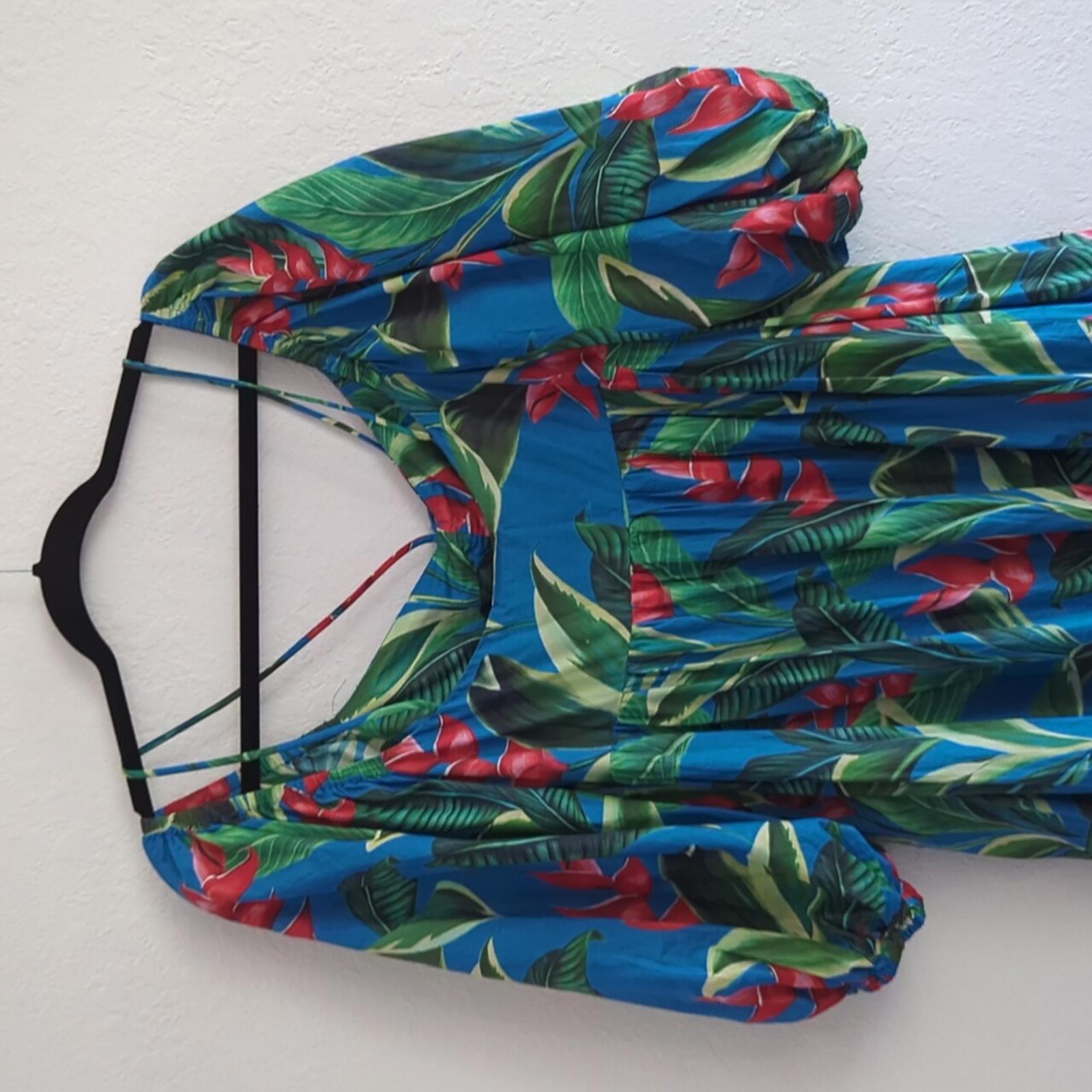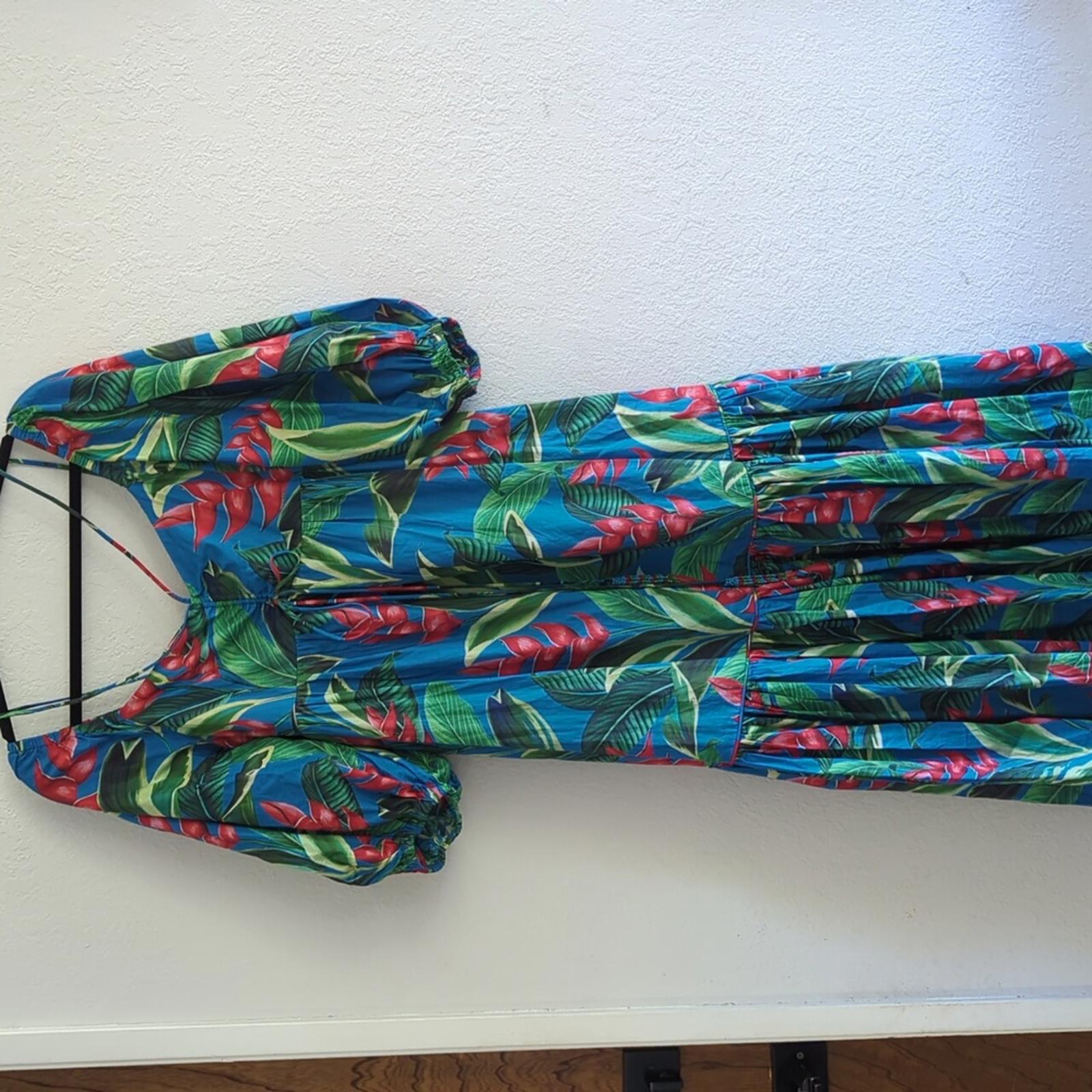 gorgeous new with tags Farm Rio dream garden midi dress. Puff sleeves that have elastic ends. drawstring front in the middle.