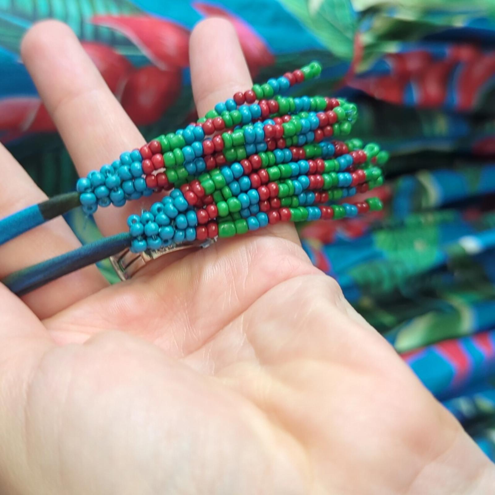 tassels at the ends of the drawstrings. tiered bottom.