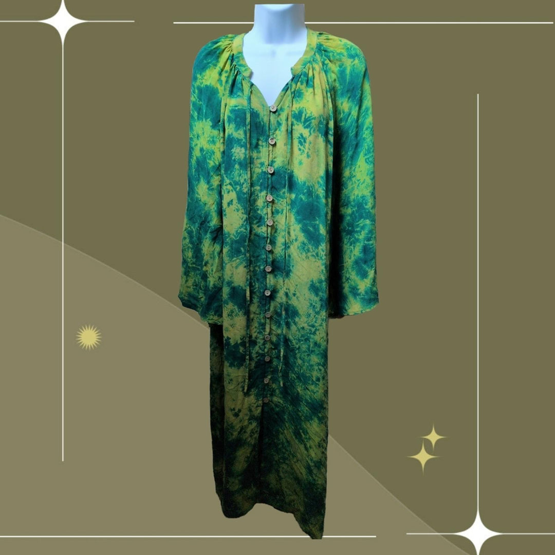Ganni Pleated Georgette V-Neck Smock Midi Dress- Medium
