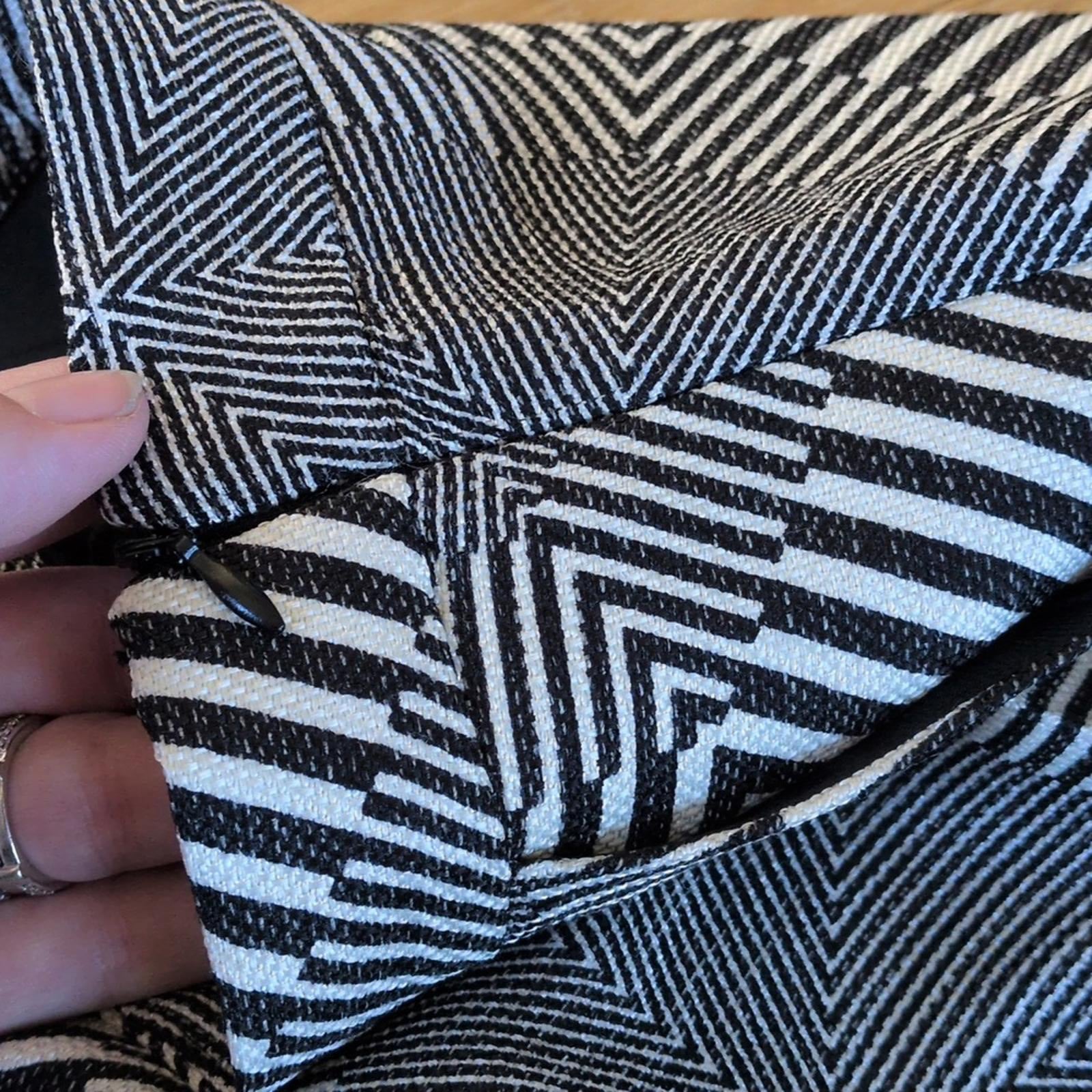 HD In Paris By Anthropologie Geometric Pencil Skirt Size L. teared bottom. zippers up on the side.