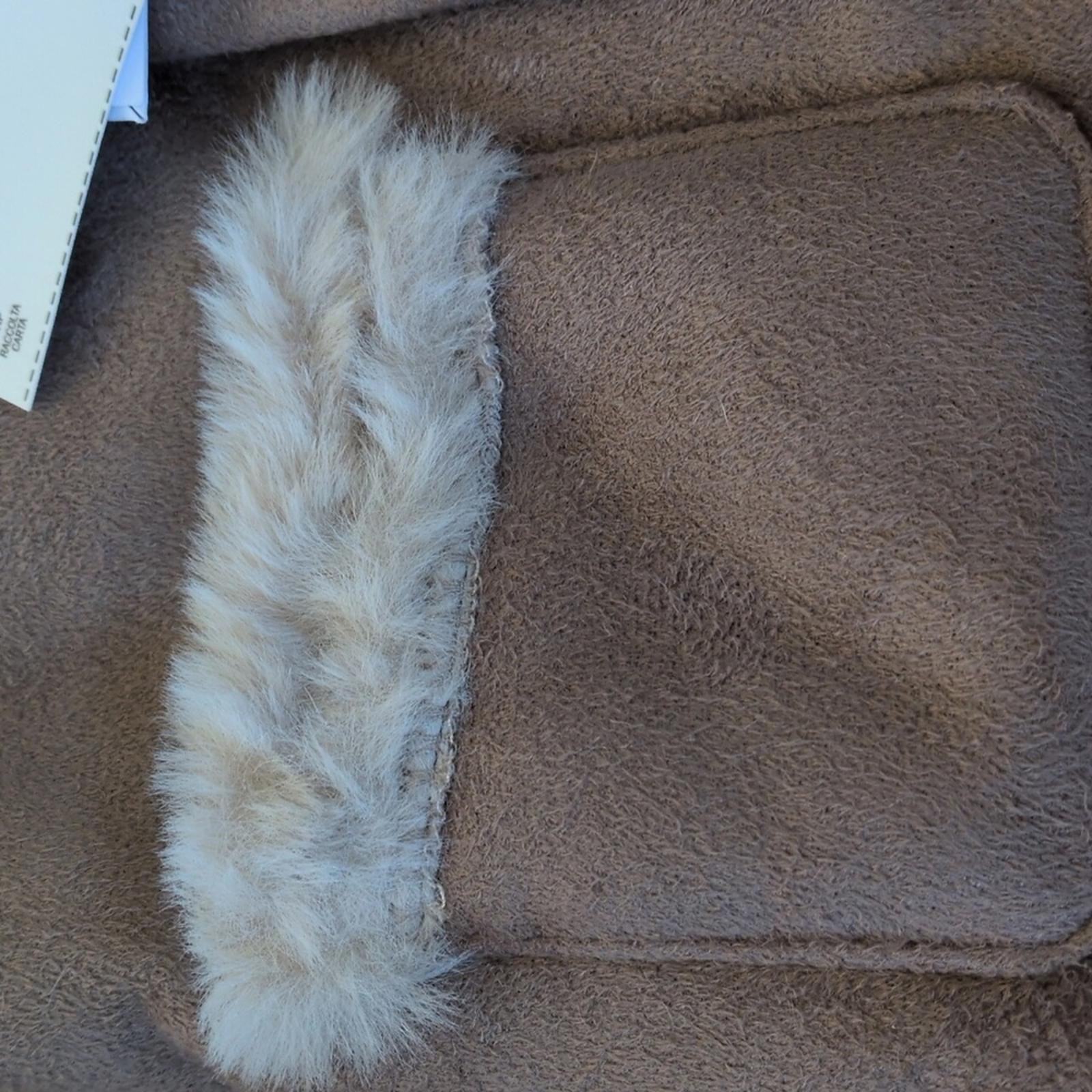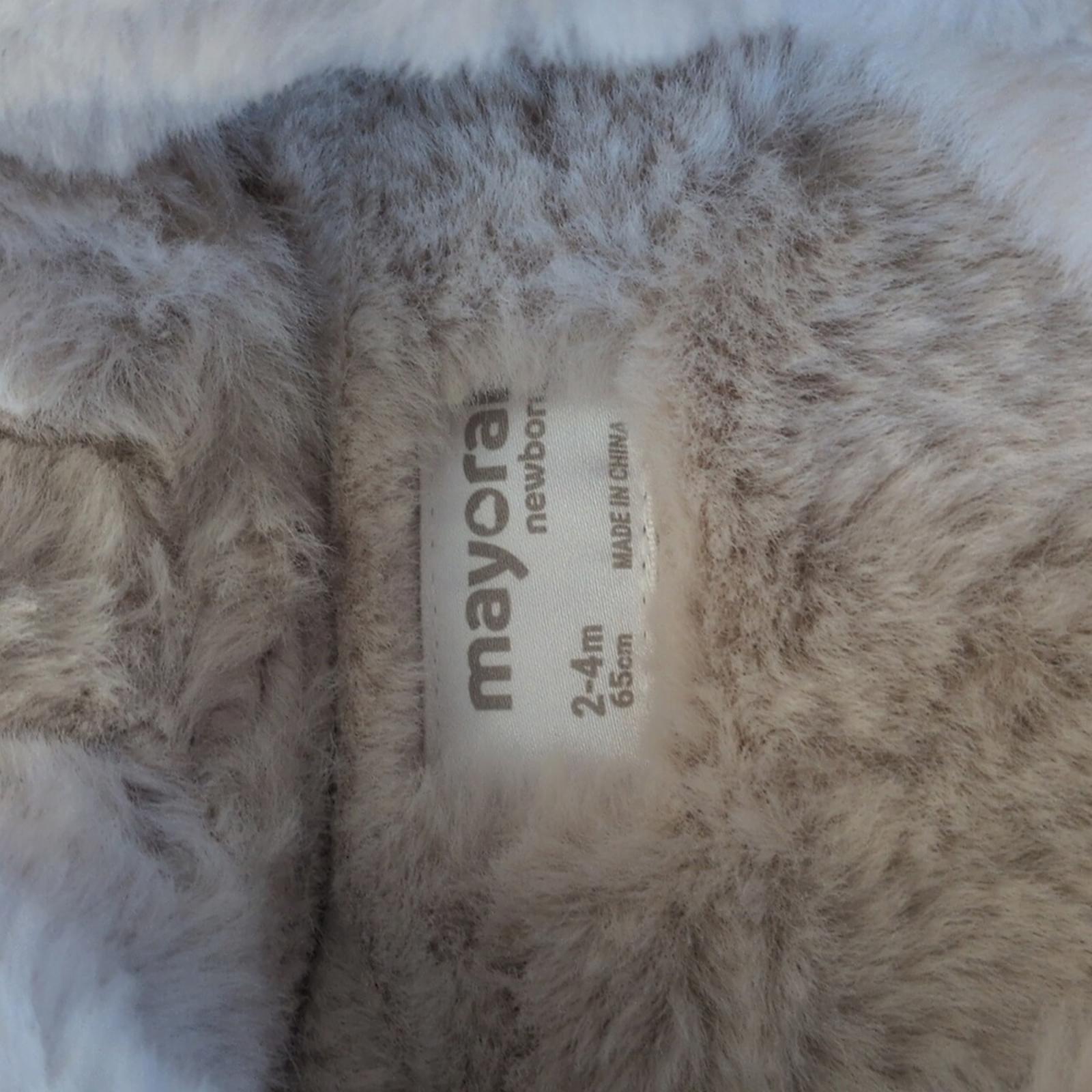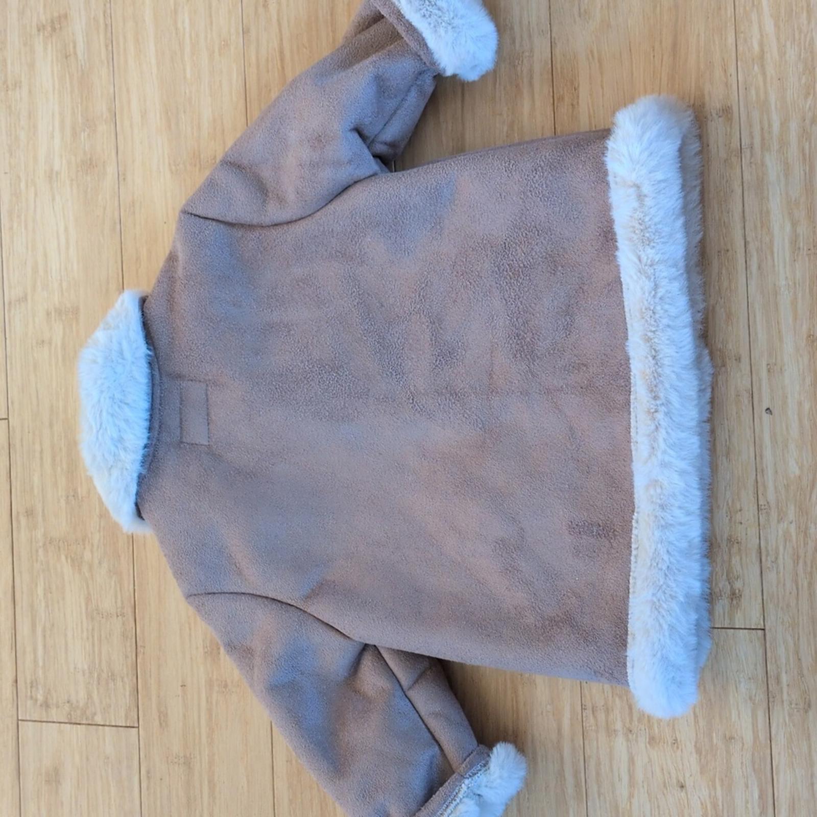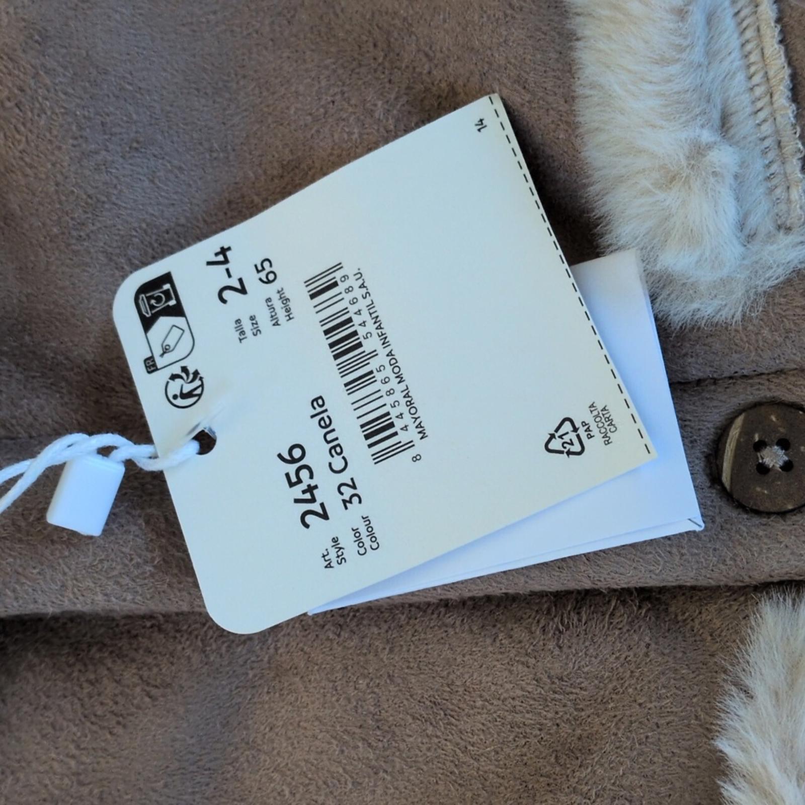 New with Tags Mayoral Newborn 2-4 Month Sherpa Jacket In Canela. Cinnamon brown color with soft suede front and soft fuzzy lining. Little wood like buttons for closure. extremely adorable and perfect for fall and upcoming winter