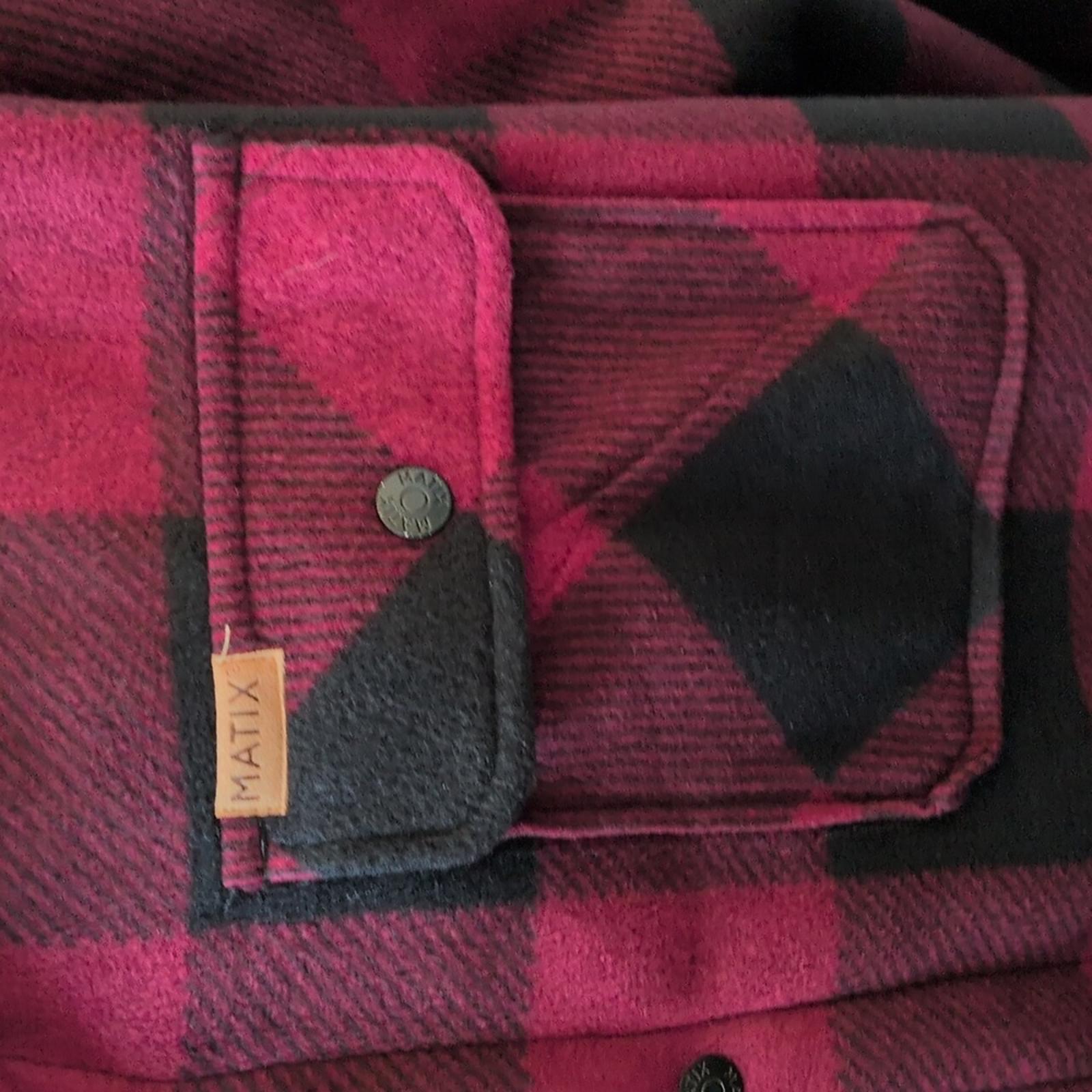 new with tags Mens Matix Sherpa Lined Shirt Jacket Size XL . snaps in the front hood at the top. Nice soft polyester material. snaps up the front.