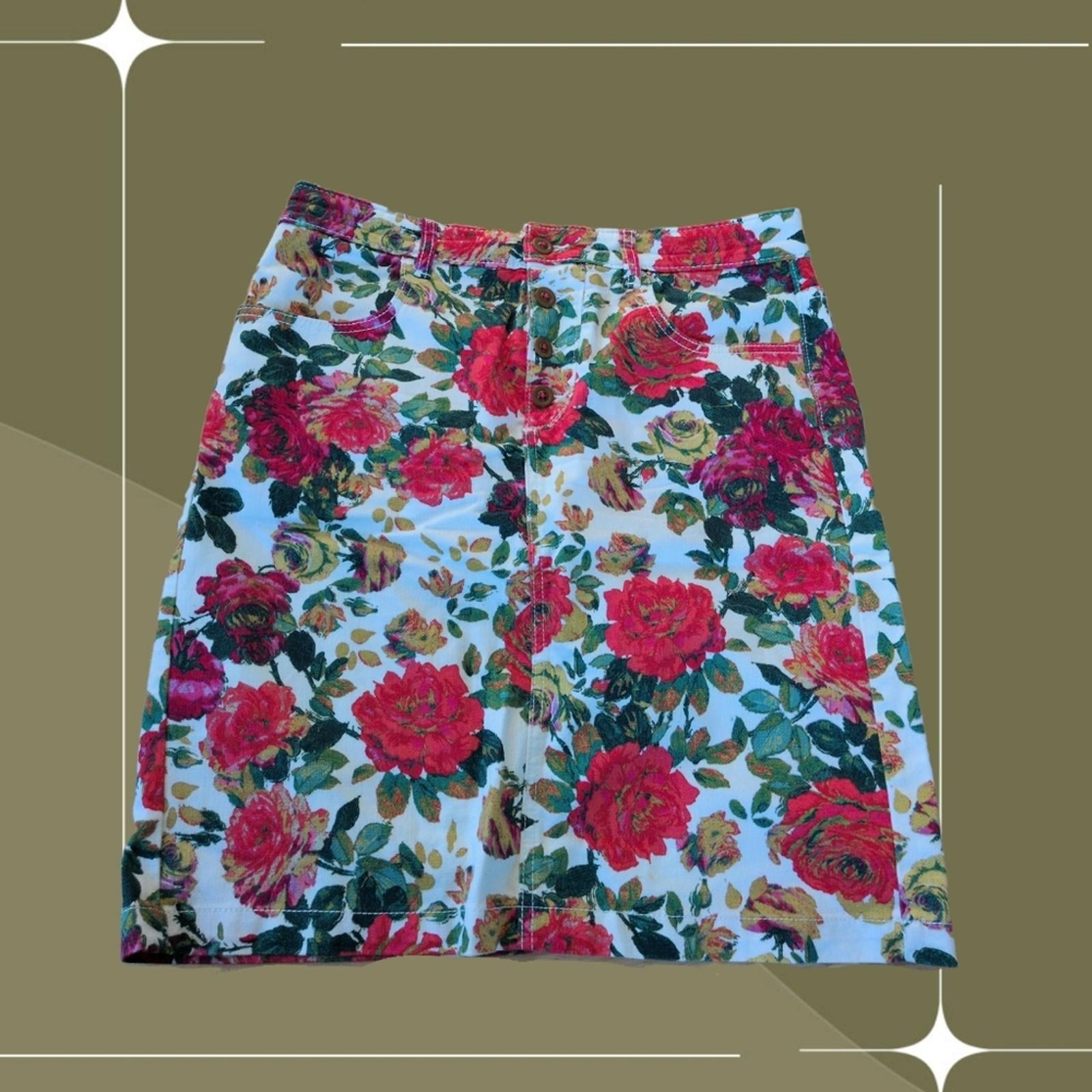 Maeve by Anthropologie pencil skirt in bright floral. buttons up front