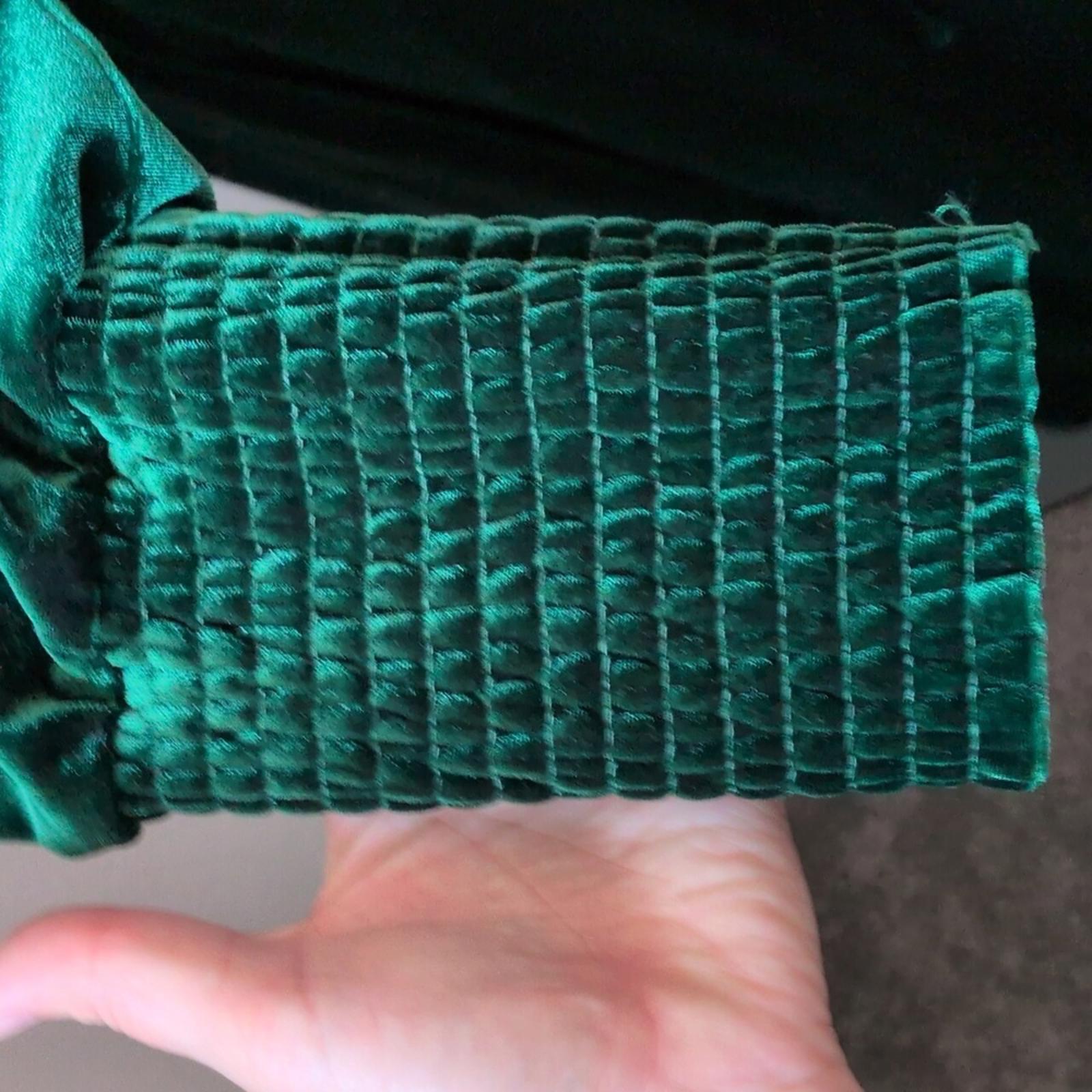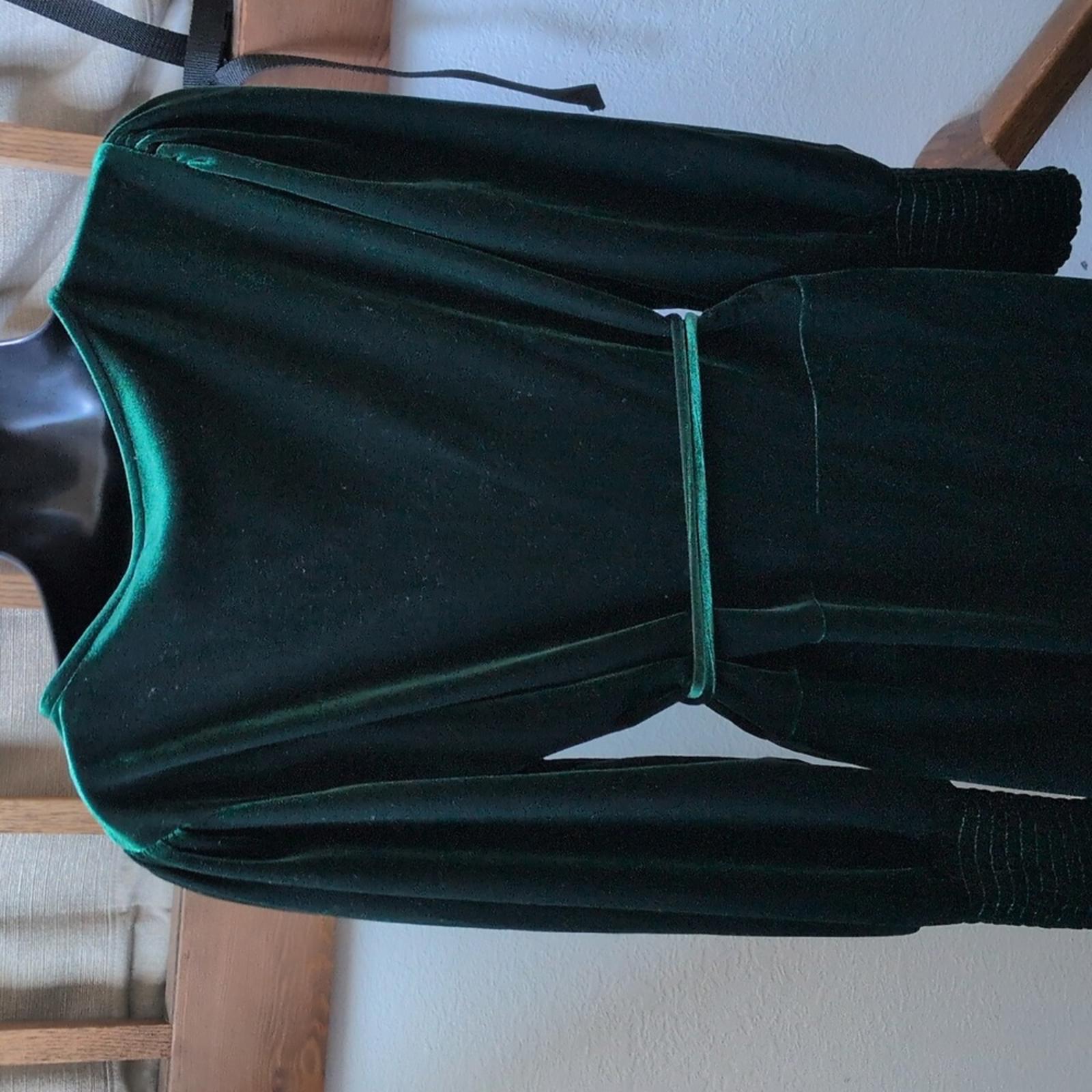 Tags attached Nordstrom Belle And Bloom Green Velvet Wrap Dress Size L.beautiful green velvet wrap dressed with tie at the waist. shuring at the end of the sleeves. measurements: shoulder to hem is about 51 in because this dress is a wrap, it can fit multiple sizes in the waist.
