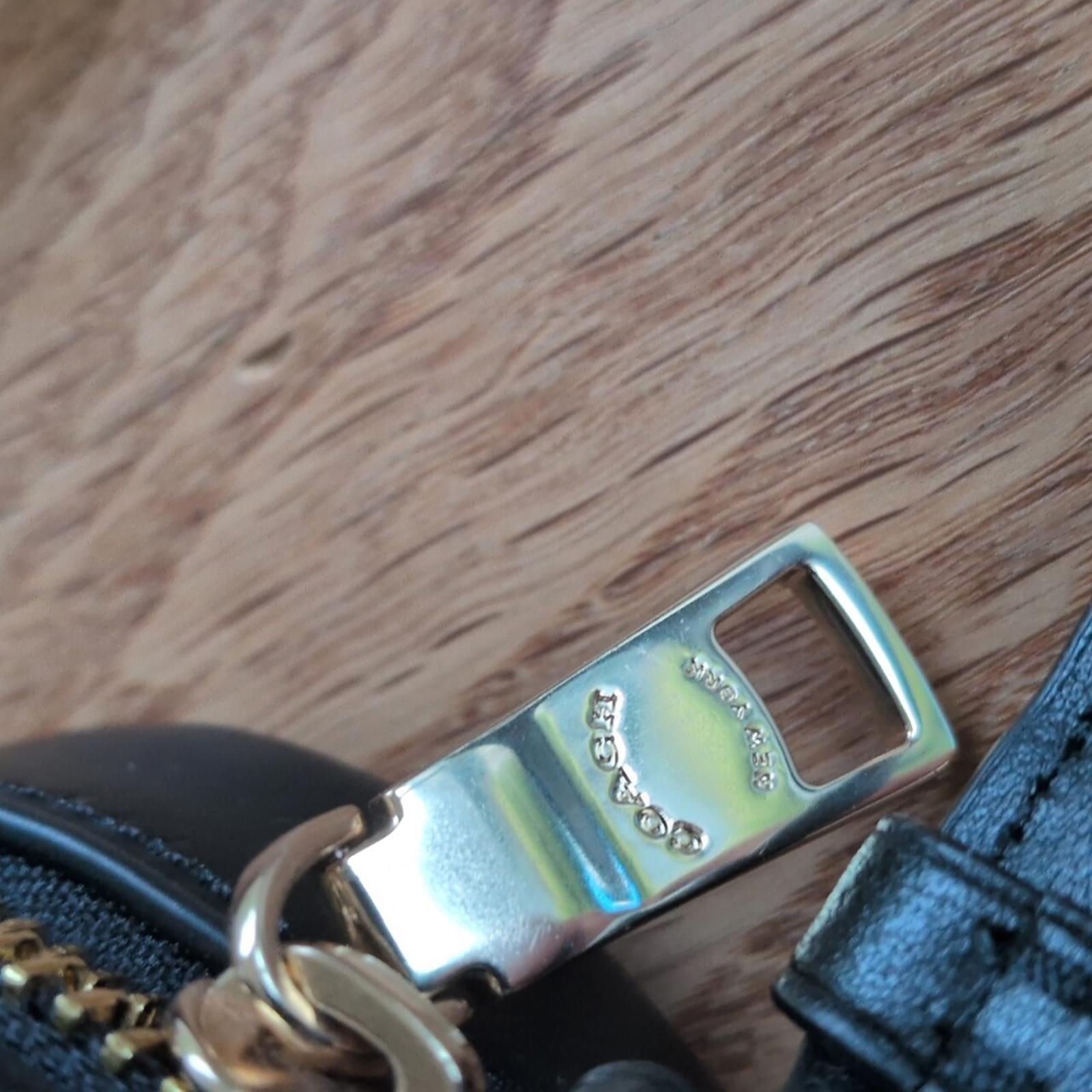Coach keychain attached to a crossbody adjustable strap