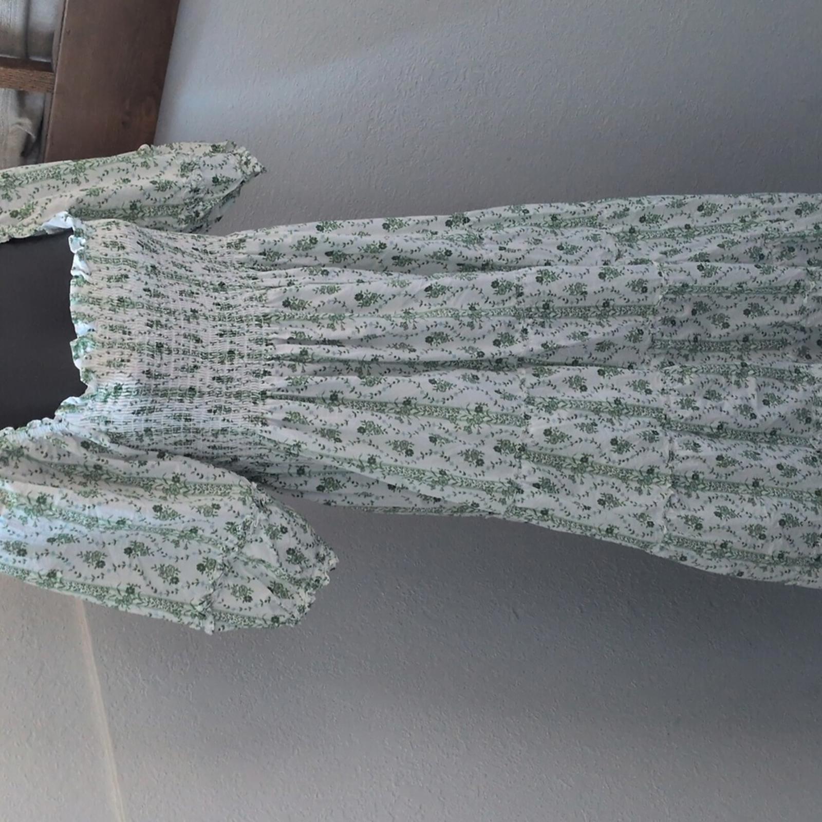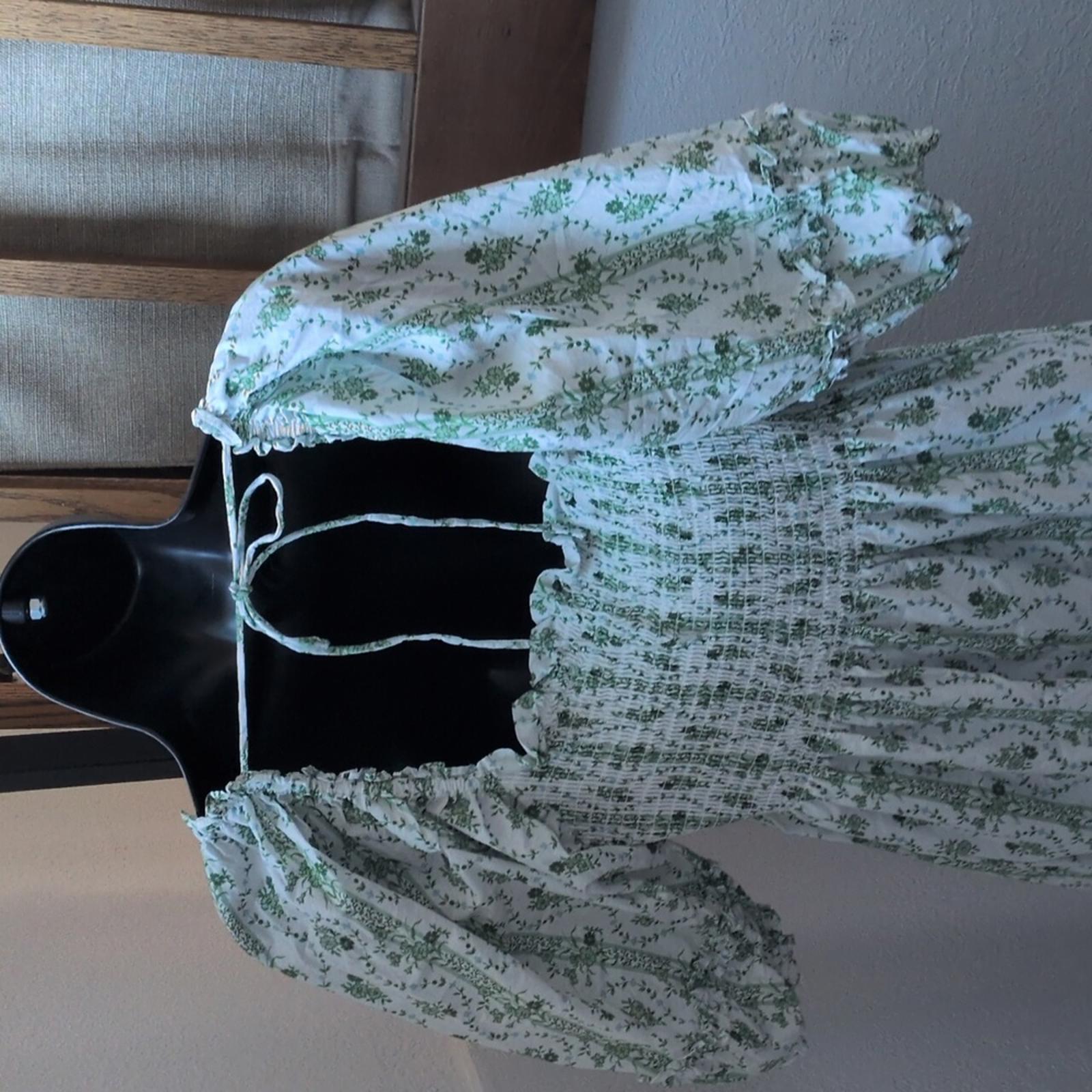 Hill House Home Nesli Nap Dress In Green Vine Print Size L. elastic bodice with puff sleeves ties in the back.