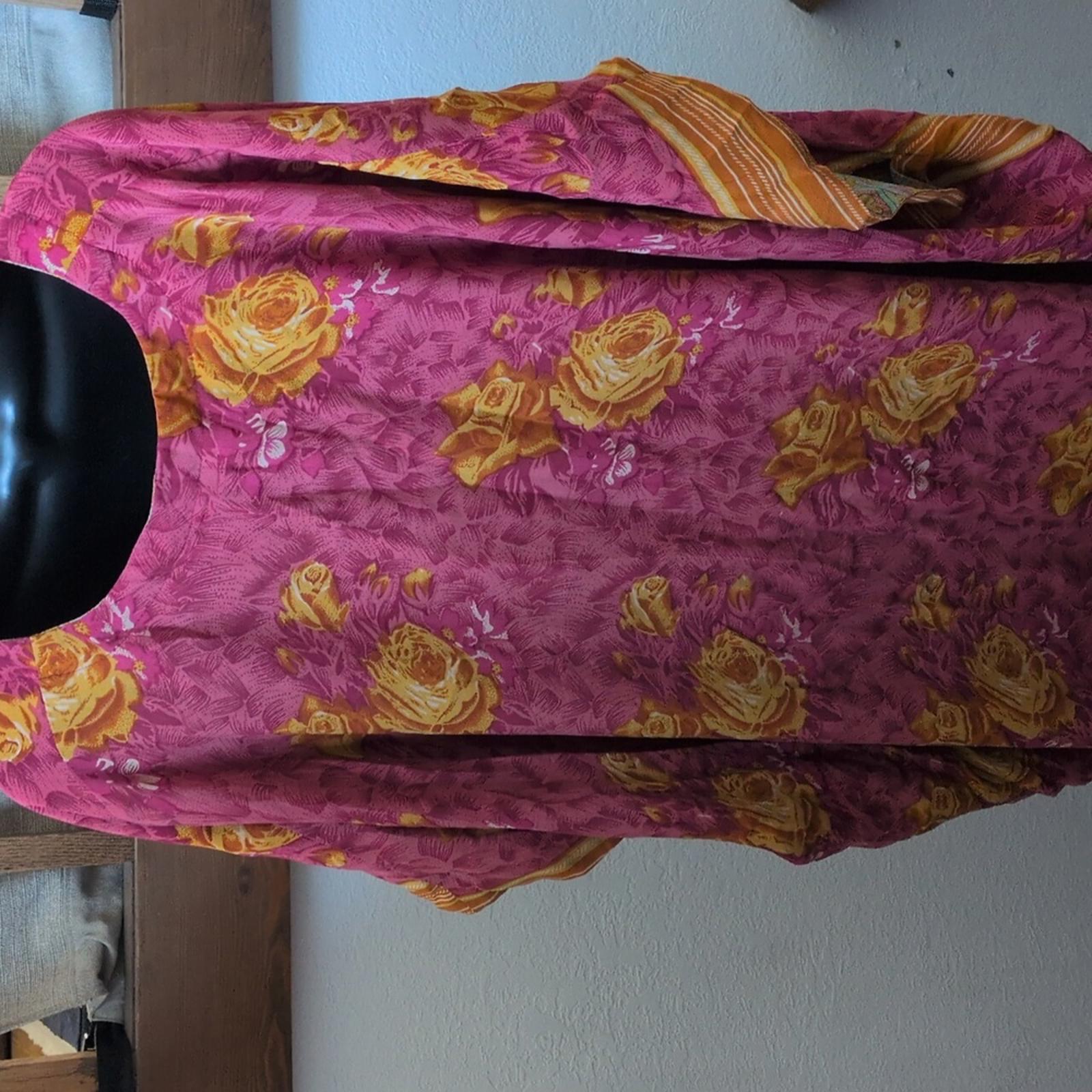 Kantha Bae Duality Midi Moo. One size fits most. silky material. has wooden buttons down the front. two pockets on the sides. extremely soft. fits oversized. recommended for a size women's medium to 2X