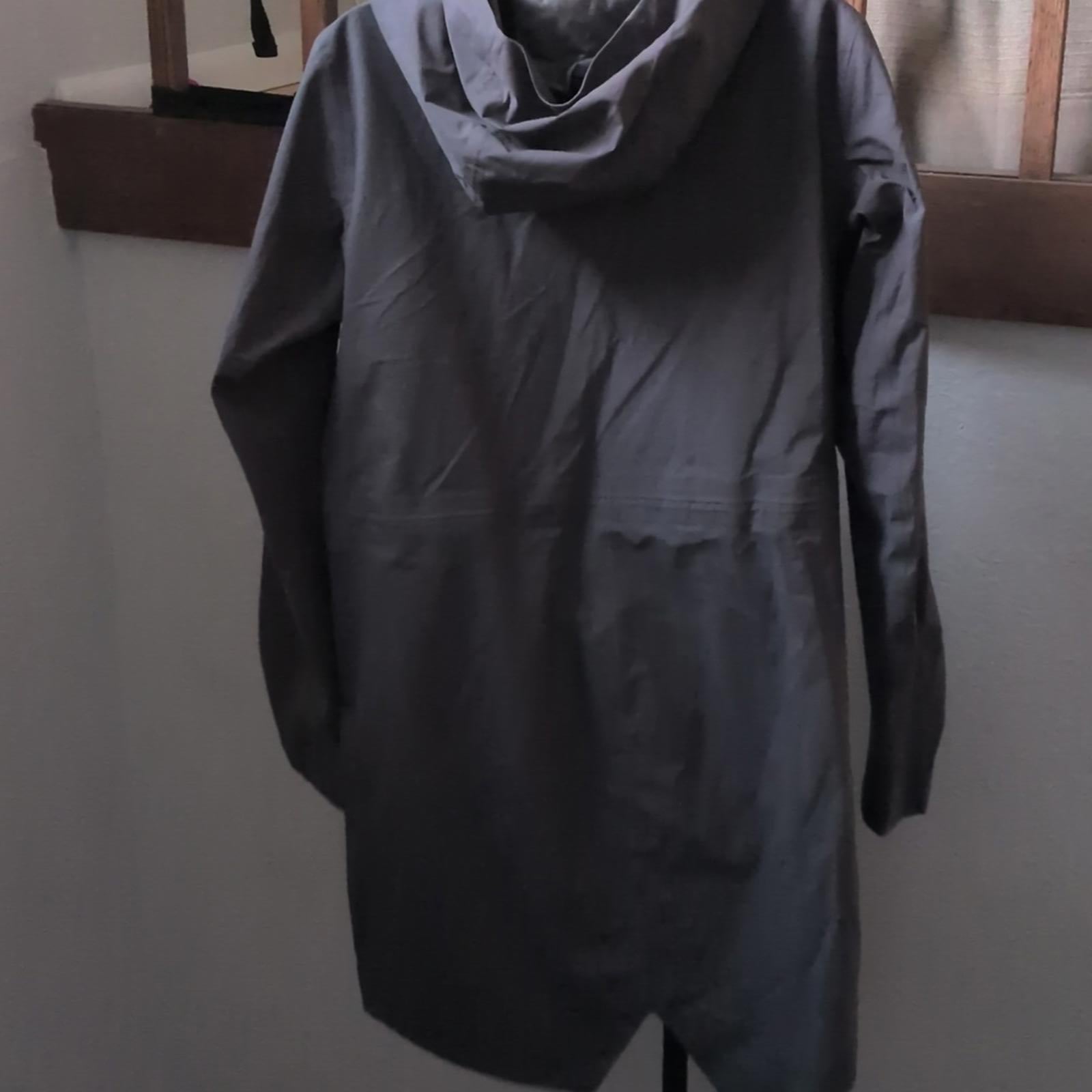 This waterproof jacket has a tailored fit and is waterproof with breathable fabric. zipper pockets. lightweight hood. cinchable waist