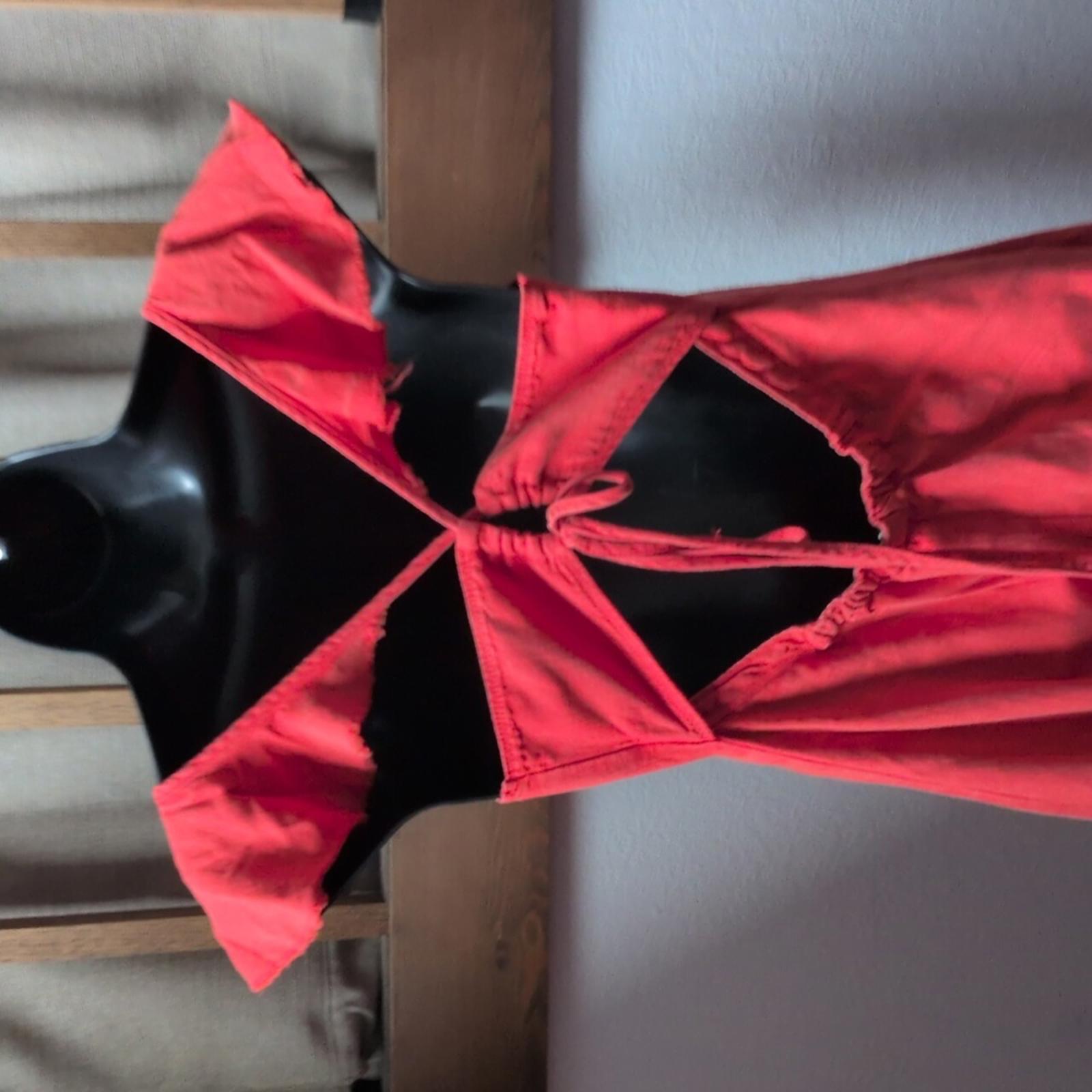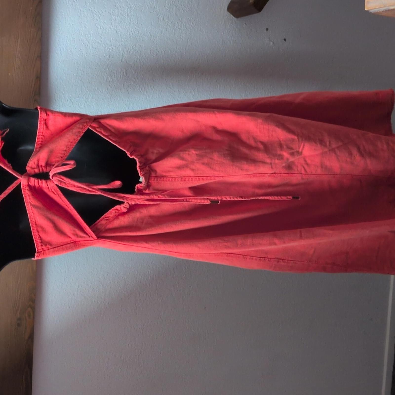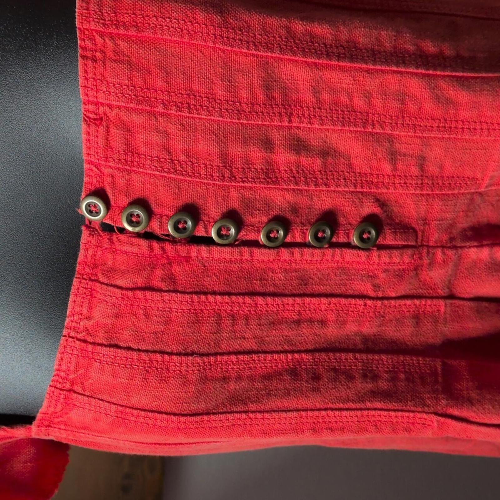 Pilcro Flutter Sleeve Midi Dress In Cayenne Red Size XS. ties in the back. flutter sleeves. faux buttons on the front. intentionally frayed bottom and edges of sleeve.