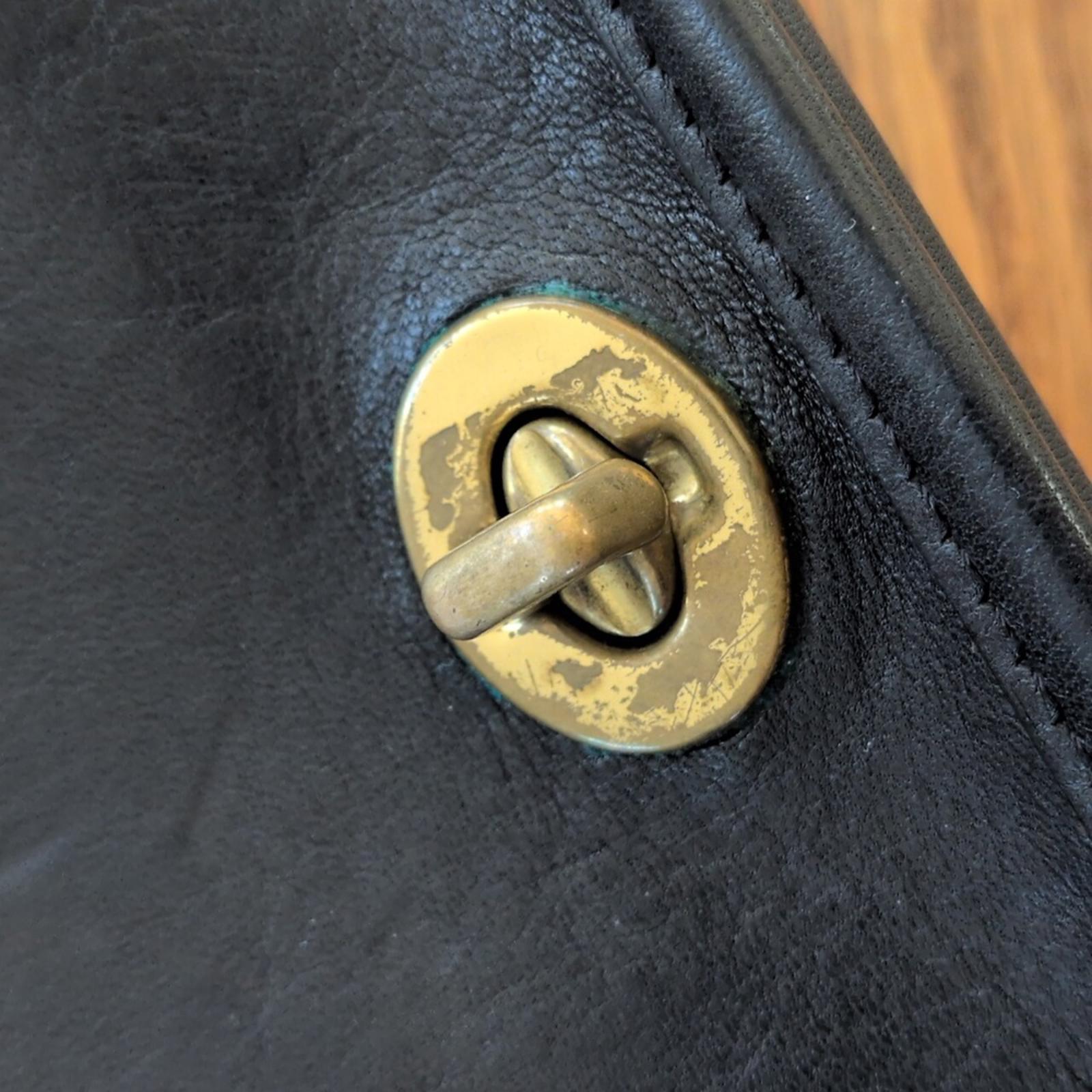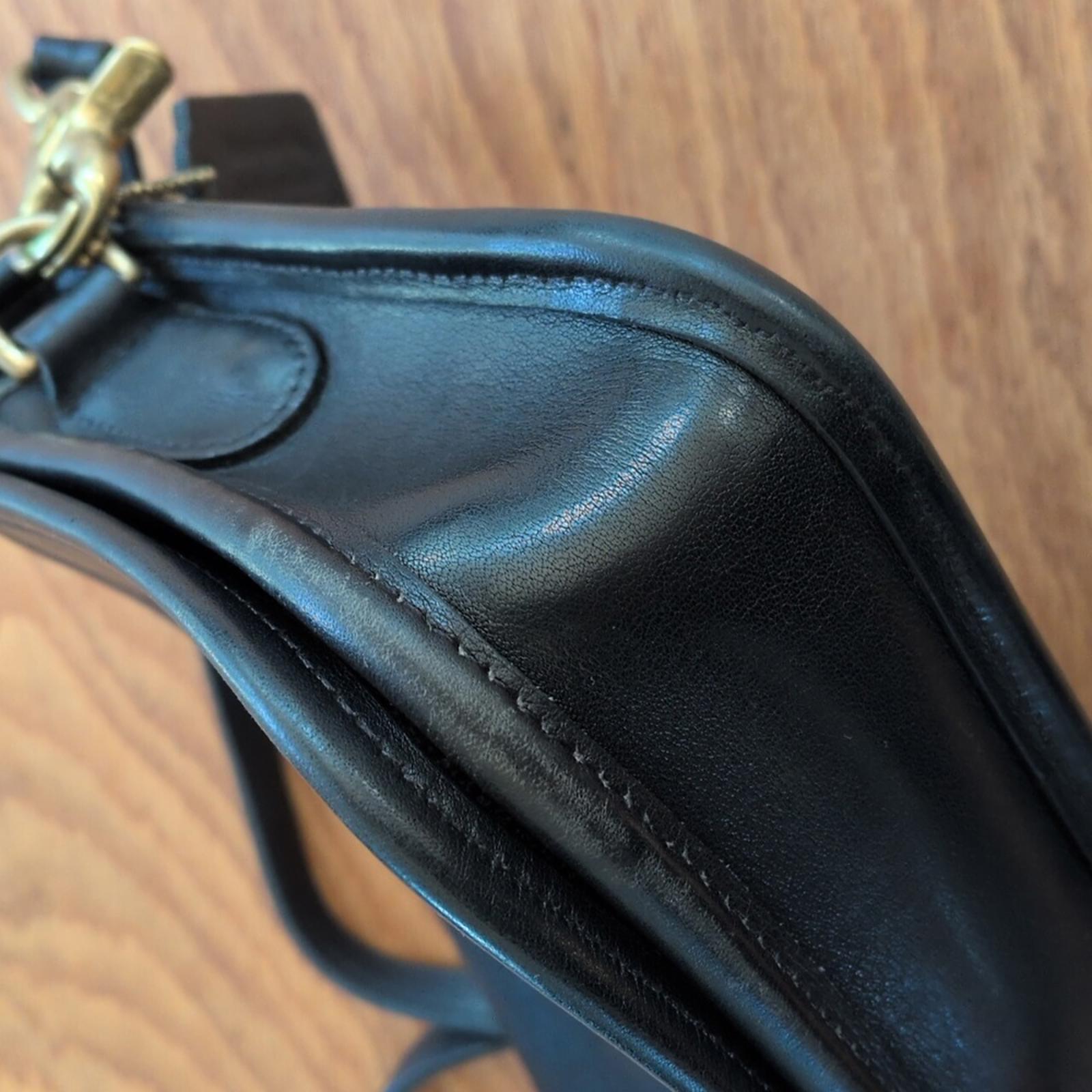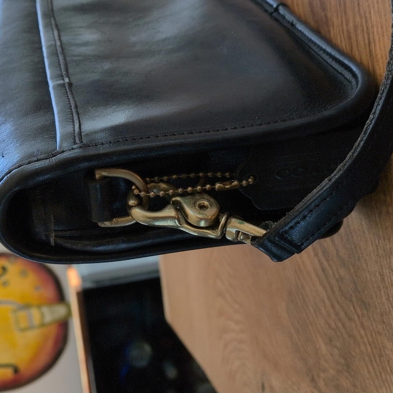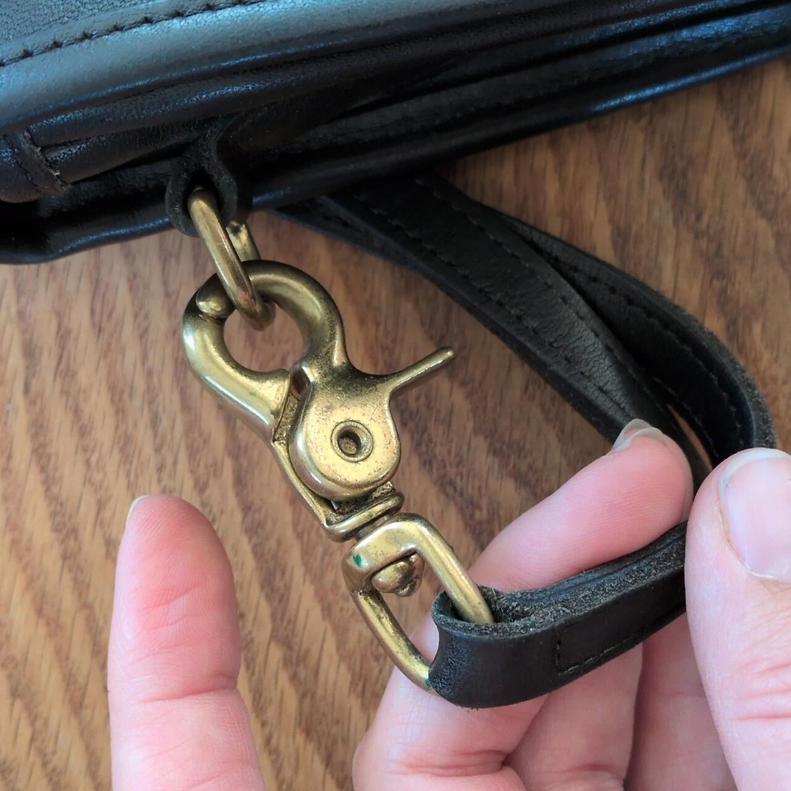 exterior: patina on the brass fittings. All original hardware. very minor markings on bag. still has its original coach keychain.