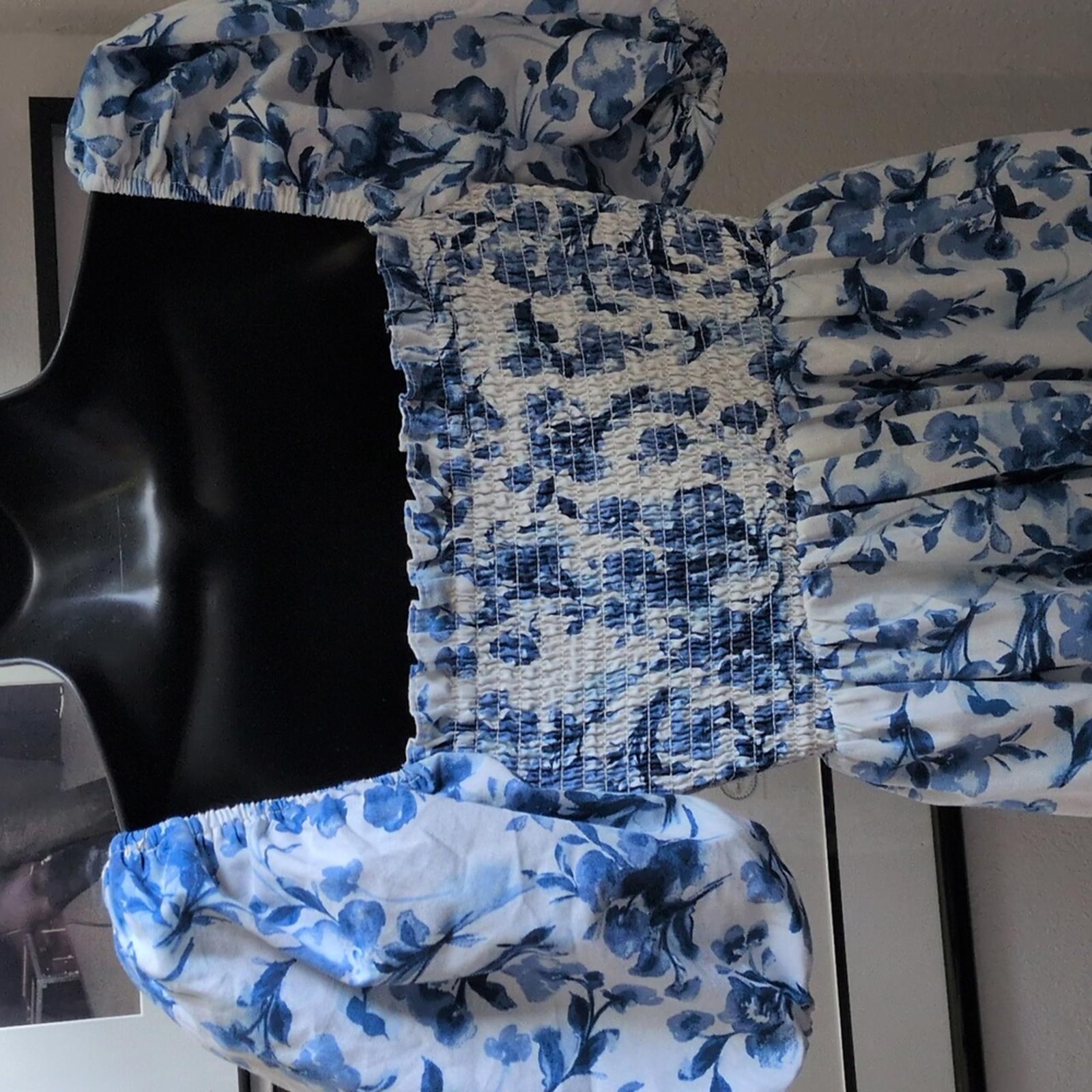 Abercrombie And Fitch Smocked Blue Floral Dress Size Xs. has pockets. puff sleeve. elastic bust and waist.