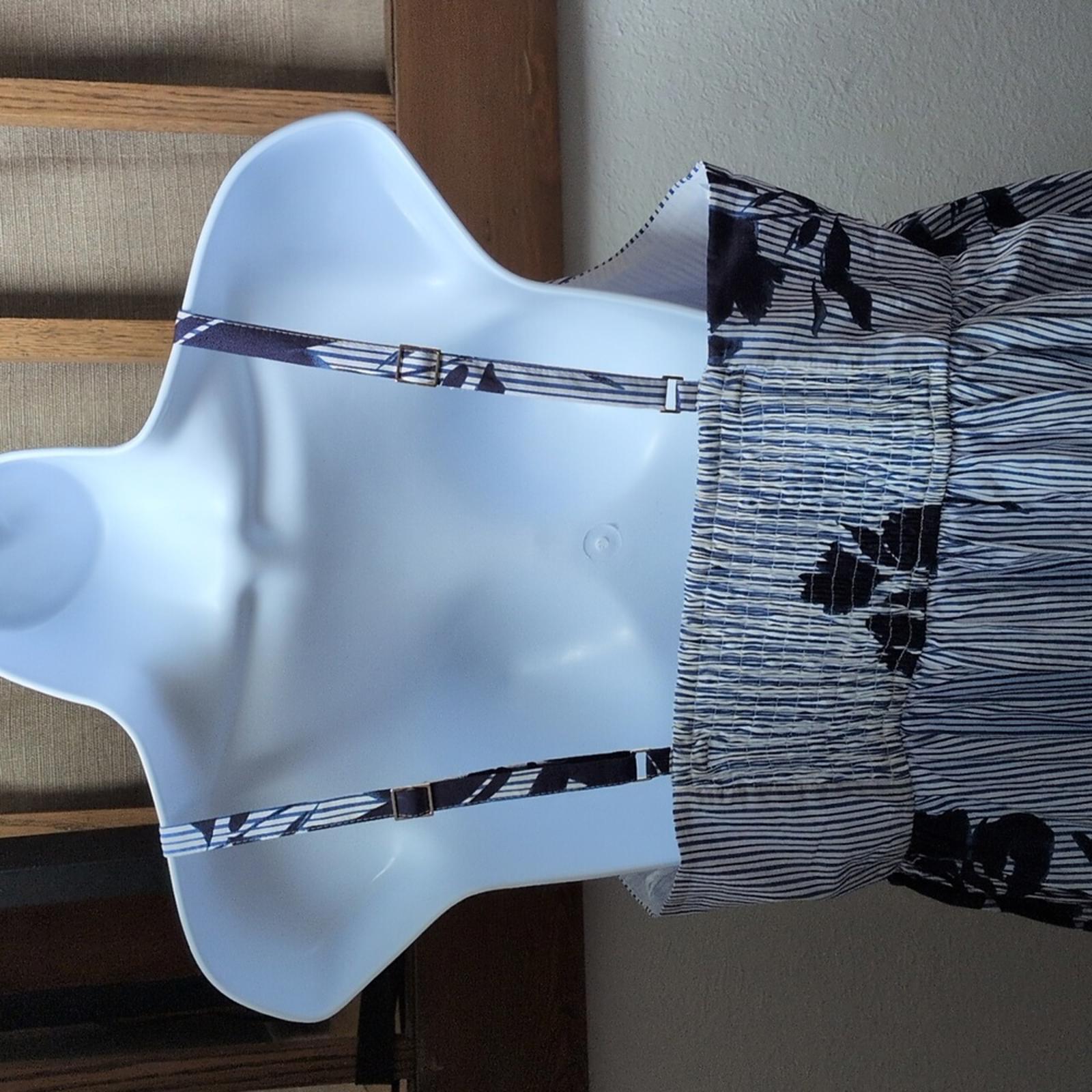 New with tags on! Abercrombie Sweetheart Babydoll Maxi Dress Blue Stripe Floral. size Large Tall. has elastic back and adjustable straps. has pockets.