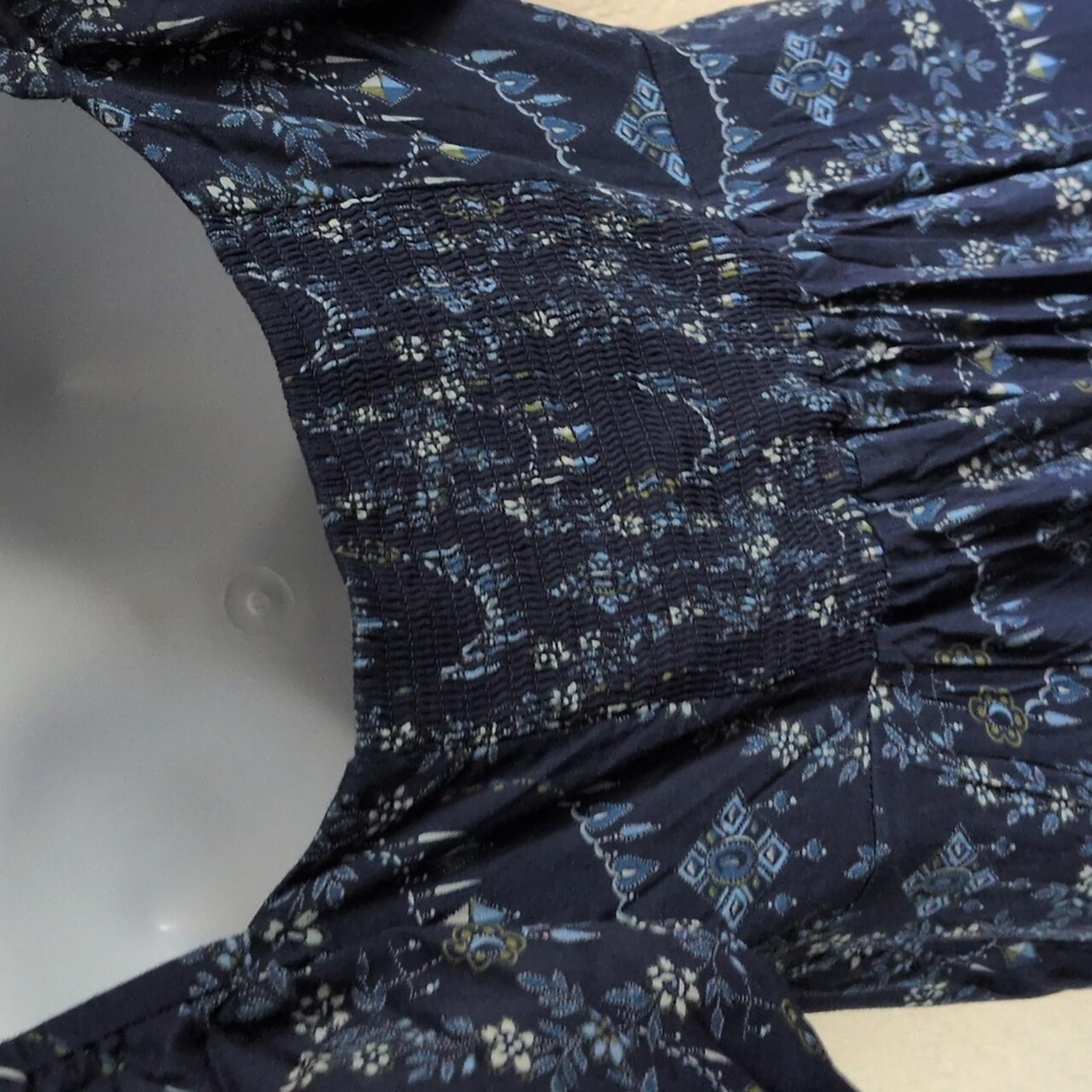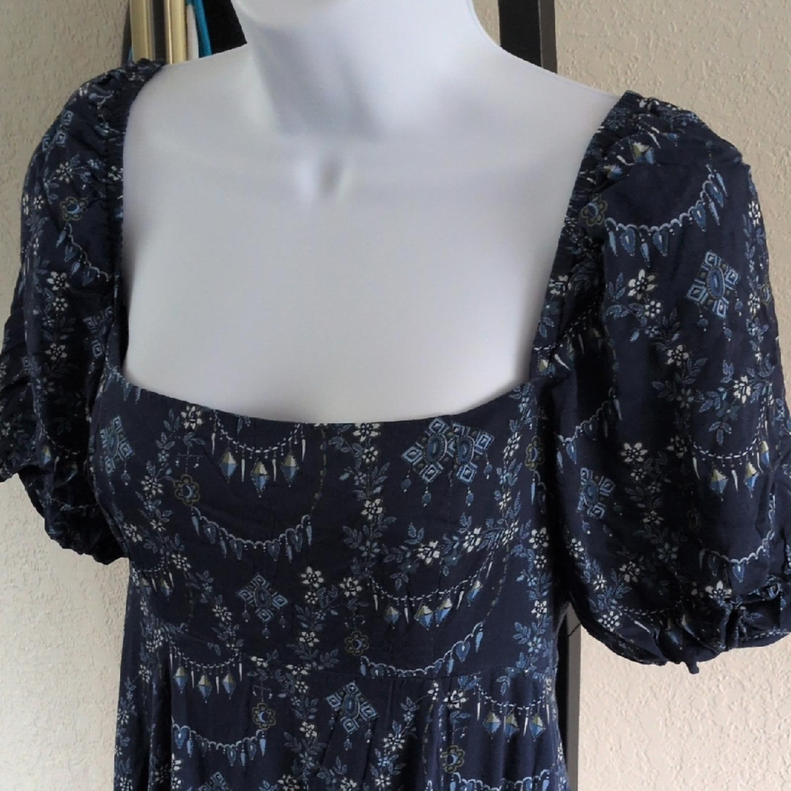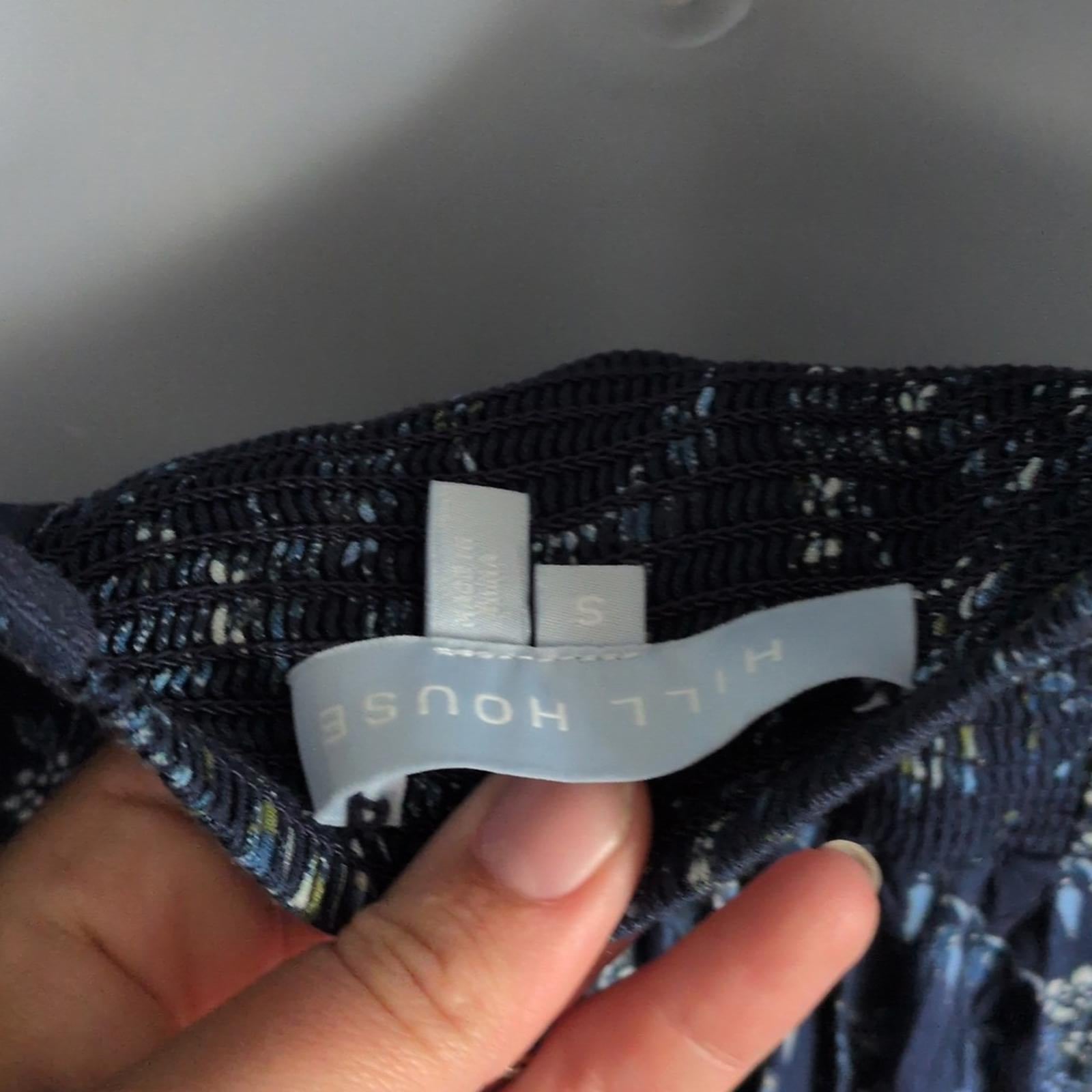 Rare Hill House Home Matilda Dress In Blue Charm Scallop Size S. amazing fit and gorgeous style. has side zipper and puff sleeves. dress is lined. Dress is a nice lightweight material. The back has some elastic in the bust.
