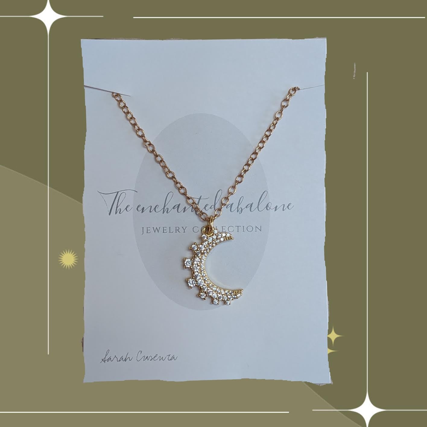 Gorgeous pendant necklace with cz crystals. 14K over stainless steel. Pendant on chain. Handmade in Pacifica, CA by The Enchanted Abalone