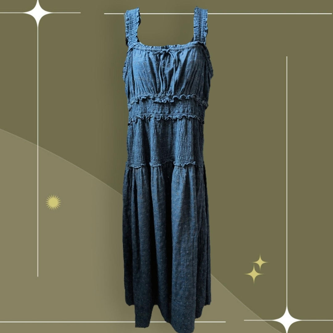 Gap X Doen Eyelet Midi Dress In Jean - Large