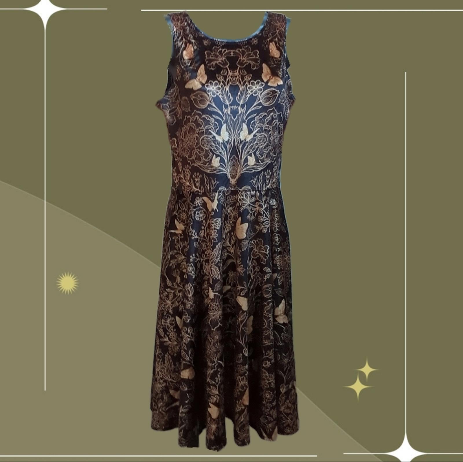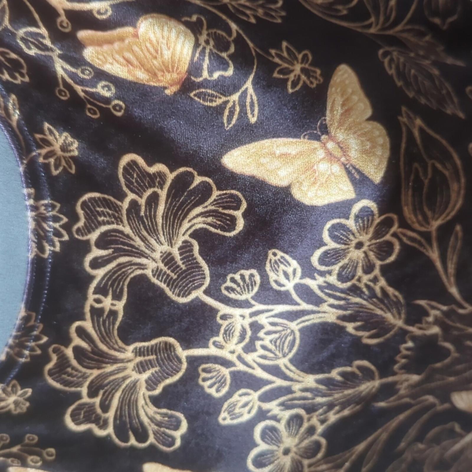 Blackmilk Golden Butterfly Garden Velvet Princess Midi Dress. Size m. fabric has some stretch to it. beautiful soft black velvet with gold butterfly and floral pattern limited edition